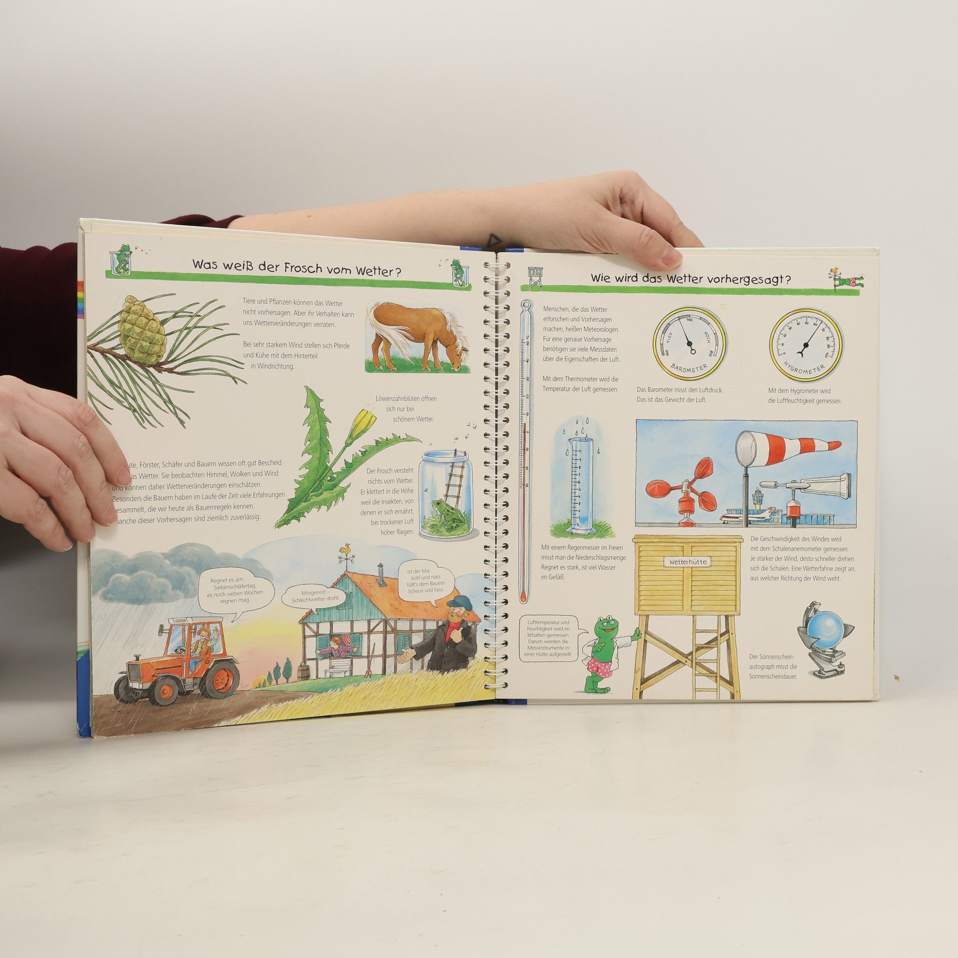 Wieso regnet, schneit und stürmt es manchmal? Wann sieht man einen Regenbogen? Wie entsteht ein Gewitter? Und warum gibt es Jahreszeiten? Kinder ab 4 Jahren haben viele Fragen rund um das Wetter. In diesem Buch finden sie detailreiche Bilder, zahlreiche Klappen und leicht verständliche Texte, die Antworten darauf geben. Eine integrierte Bastelvorlage für eine Wetteruhr ermöglicht es den Kindern, das Wetter selbst zu beobachten. Die Sachbuchreihe für Kinder von 4–7 Jahren lädt dazu ein, täglich Neues zu entdecken und beantwortet viele Fragen, die dabei aufkommen. Warum sind die Dinosaurier ausgestorben? Wo ist die Sonne in der Nacht? Wozu brauchen wir das Blut? Die beliebte Reihe gibt Antworten auf Augenhöhe und behandelt verschiedene Themen aus der Alltags- und Interessenswelt der Kinder altersgerecht und mit viel Liebe zum Detail. Detailreiche Bilder, verständliche Sachtexte und überraschende Klappen veranschaulichen Bewegungen und Abläufe, sodass Kinder sich ihre Themen selbst erschließen können. Der Spaß am eigenhändigen Entdecken, die liebevolle Umsetzung und die qualitativ hochwertige Ausstattung garantieren langanhaltende Freude an jedem einzelnen Buch.