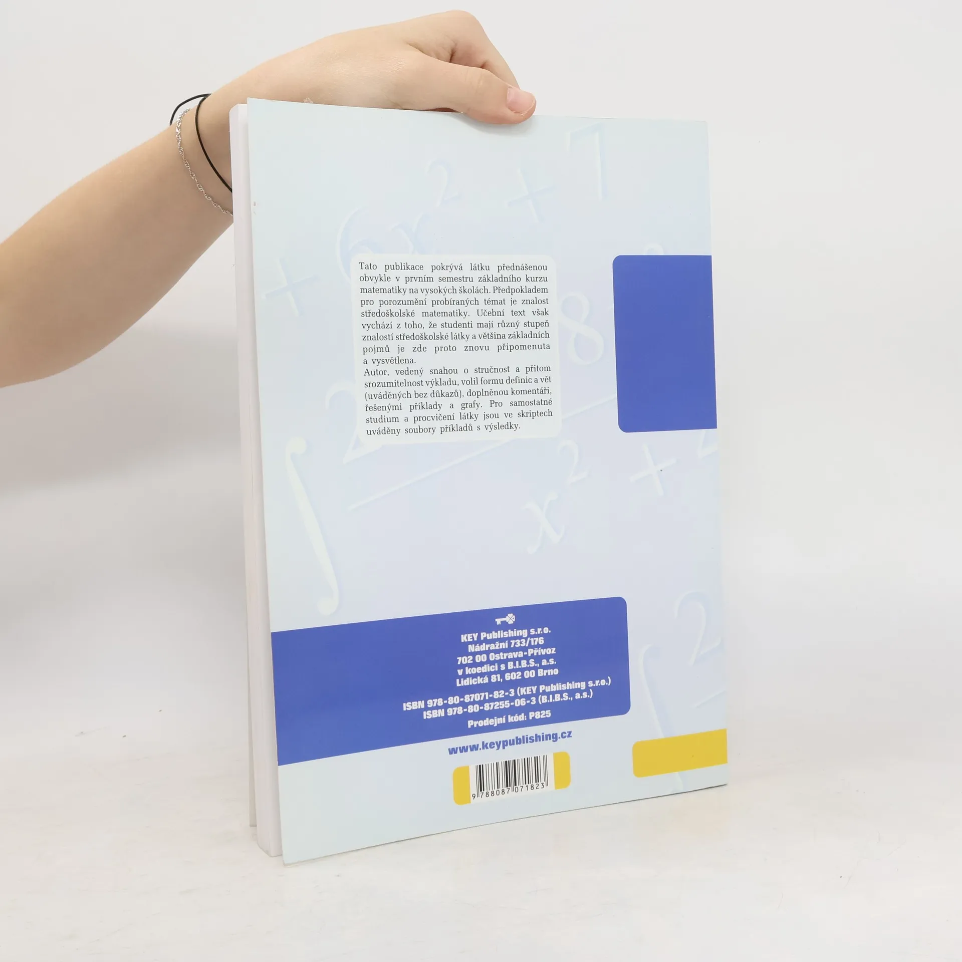 Tato publikace pokrývá látku přednášenou obvykle v prvním semestru základního kurzu matematiky na vysokých školách. Předpokladem pro porozumění probíraných témat je znalost středoškolské matematiky. Učební text však vychází z toho, že studenti mají různý stupeň znalostí středoškolské látky a většina základních pojmů je zde proto znovu připomenuta a vysvětlena. Autor, vedený snahou o stručnost a přitom srozumitelnost výkladu, volil formu definic a vět (uváděných bez důkazů), doplněnou komentáři, řešenými příklady a grafy. Pro samostatné studium a procvičování látky jsou ve skriptech uváděny soubory příkladů s výsledky.
