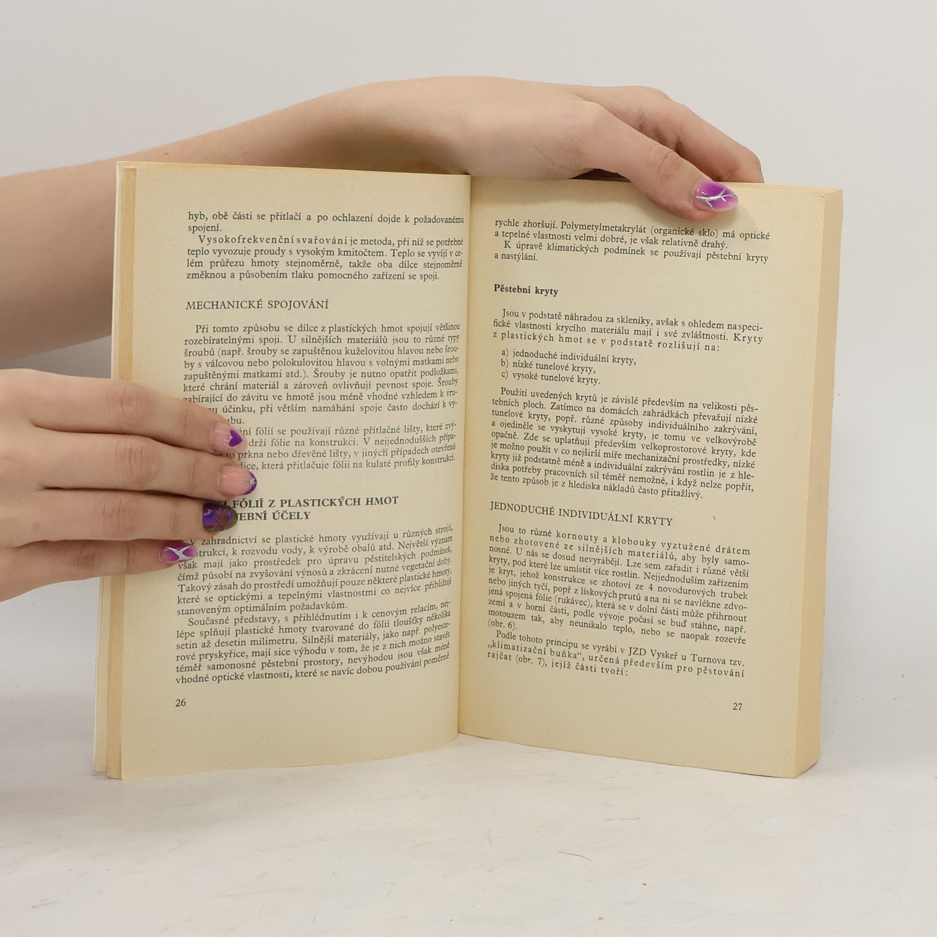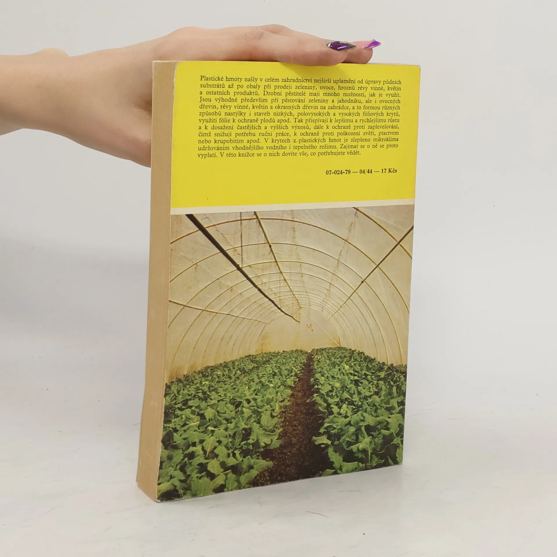 Příručka ukazuje široké možnosti využití plastických hmot nejen v zahradnické velkovýrobě, ale i v domácí zahrádce. Upozorňuje na význam plastů v zahrádkářství i v zahradnictví, popisuje používané druhy těchto hmot i ekologické podmínky při pěstování rostlin pod fóliemi. Seznamujese způsoby použití plastických hmot v zahrádce i při pěstování zeleniny, květin a ovoce v zahradnické velkovýrobě.