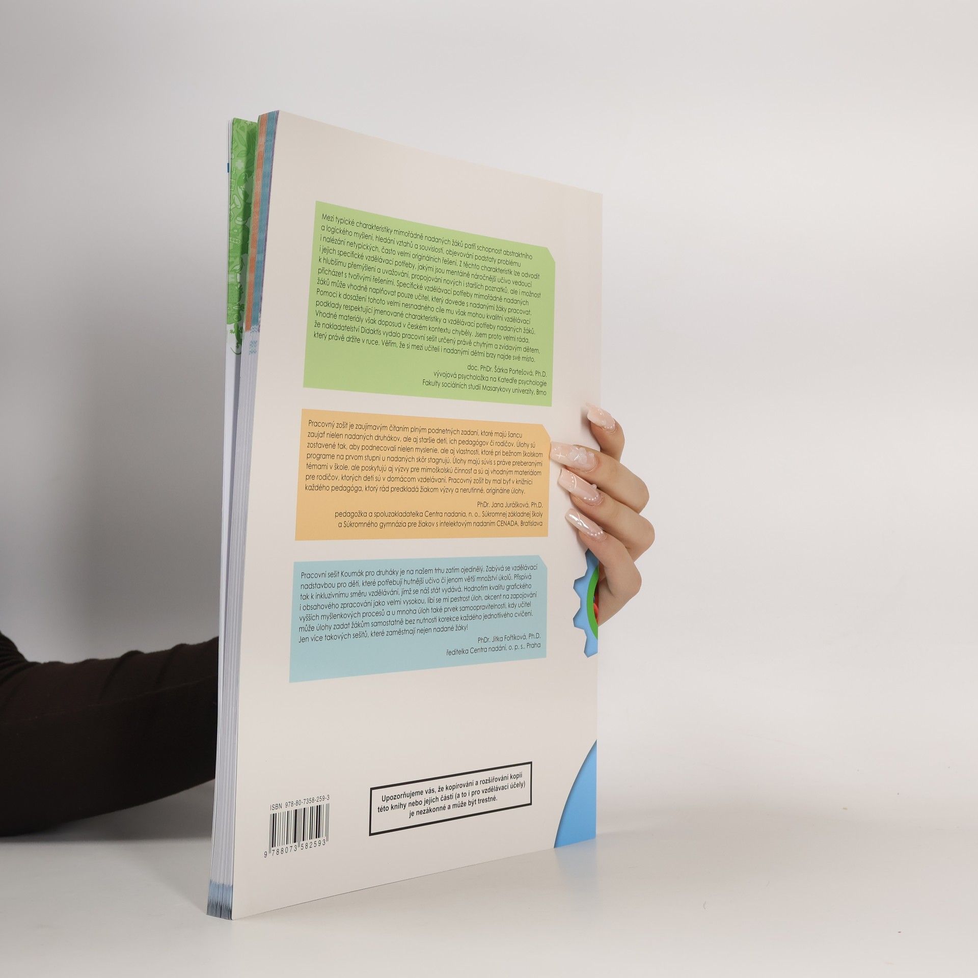 Pracovní sešity znají z hodin matematiky, češtiny a prvouky všechny děti na prvním stupni základní školy. Co když je však některé dítě hodně zvídavé, obzvlášť rychlé nebo velmi nadané? Nakladatelství Didaktis nyní přichází s ojedinělým konceptem učebních materiálů určených právě pro zvídavé, rozumově (i mimořádně) nadané žáky, a to ve formě rozšiřujícího pracovního sešitu vhodného k jakýmkoli učebnicím matematiky, češtiny a prvouky. Pracovní sešit přináší zajímavé texty s přírodovědnými i humanitními tématy a mezipředmětové projekty s úlohami rozvíjejícími čtenářskou gramotnost, schopnost práce s informacemi a rozšiřujícími poznatky z různých oblastí života nad rámec RVP. • Úkoly k uvedeným textům rozvíjejí lingvistické dovednosti, matematické, logické a kritické myšlení, prostorovou představivost, aktivní práci s informacemi, tvořivost, postřeh atd. • Obsahuje rovněž sbírku náročnějších úloh k učivu matematiky a českého jazyka podle tematického plánu 2. ročníku. Vyučující těmito úlohami snadno vyplní či doplní konkrétní hodinu, zbude-li mu např. na jejím konci chvíle času, a to v souladu se vzdělávacími cíli a individuálními potřebami žáků. • Je plnobarevný a obohacený o řadu poutavých ilustrací, fotografií, tabulek, schémat a grafů. • Úkoly jsou vhodné jak pro samostatnou práci, tak pro práci ve dvojicích či skupinkách. • Klíč k úlohám bude pro učitele a rodiče k dispozici v elektronické podobě na stránkách nakladatelství.