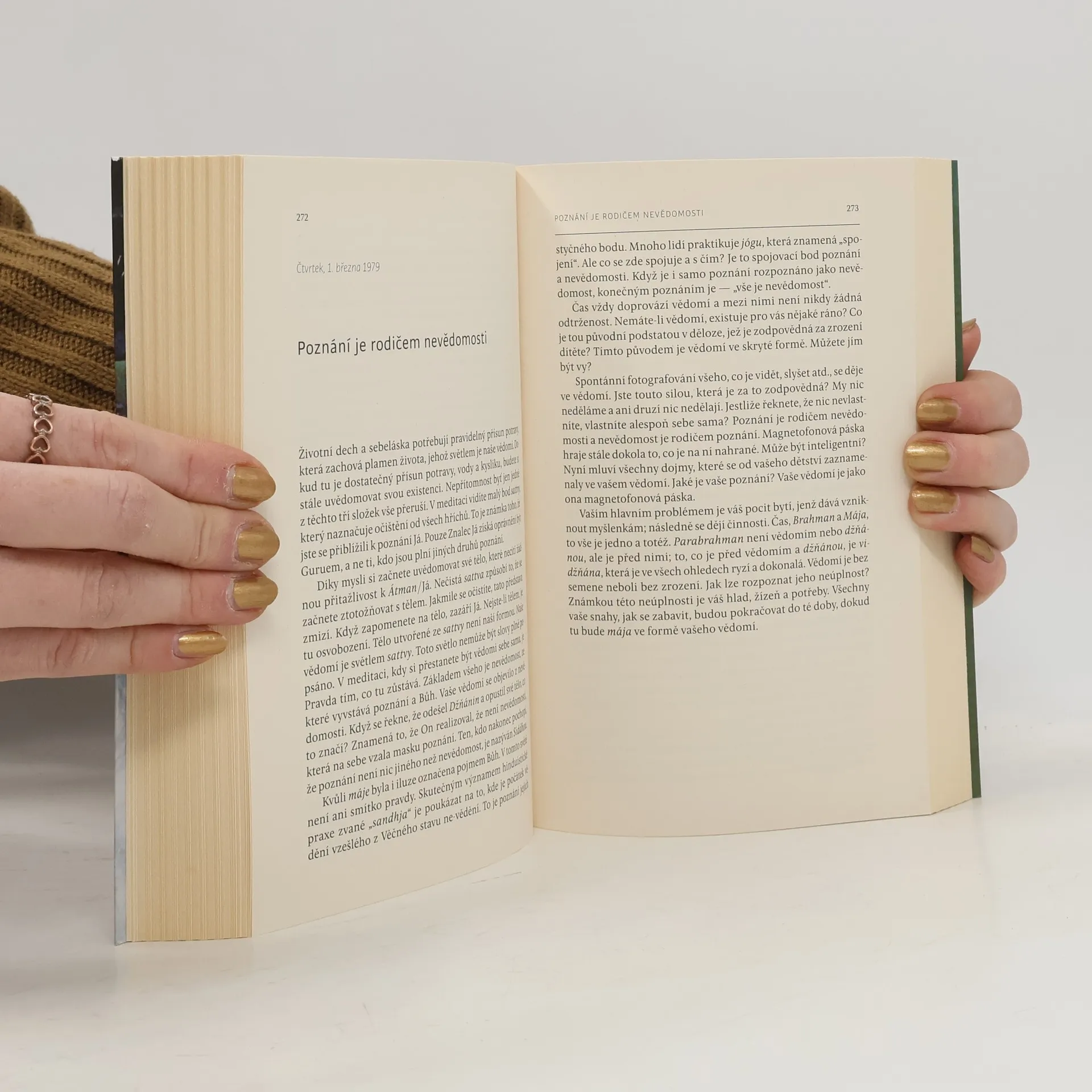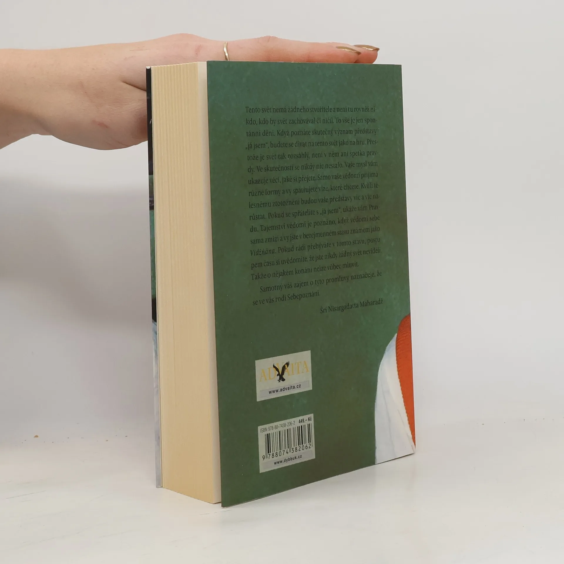 „Tento svět nemá žádného stvořitele a není tu rovněž nikdo, kdo by svět zachovával či ničil. To vše je jen spontánní dění. Když poznáte skutečný význam představy „já jsem“, budete se dívat na tento svět jako na hru. Přestože je svět tak rozsáhlý, není v něm ani špetka pravdy. Ve skutečnosti se nikdy nic nestalo. Vaše mysl vám ukazuje věci, jaké si přejete. Samo vaše vědomí přijímá různé formy a vy spatřujete vize, které chcete. Kvůli tělesnému ztotožnění budou vaše představy víc a víc narůstat. Pokud se spřátelíte s „já jsem“, ukáže vám Pravdu. Tajemství vědomí je poznáno, když vědomí sebe sama zmizí a vy jste v bezejmenném stavu známém jako Vidžňána. Pokud rádi přebýváte v tomto stavu, postupem času si uvědomíte, že jste nikdy žádný svět neviděli. Takže o nějakém konání nelze vůbec mluvit.“