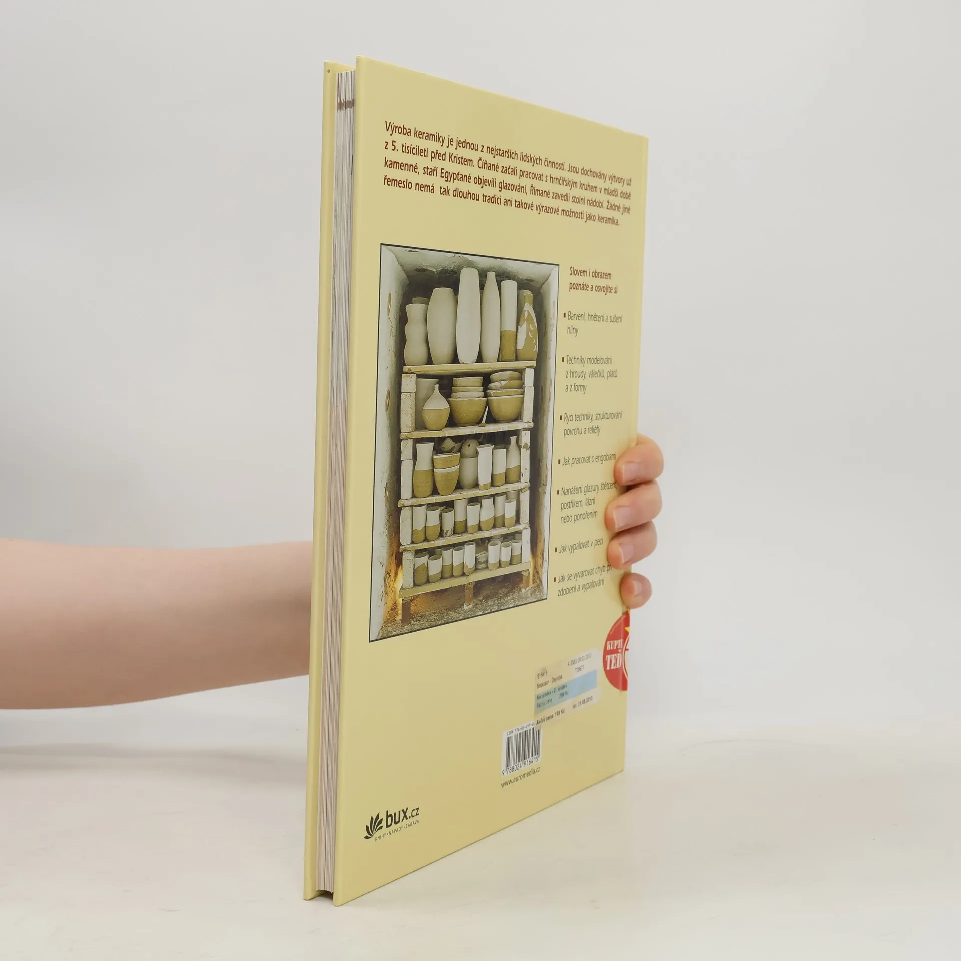 Výroba keramiky je jednou z nejstarších lidských činností. Slovem i obrazem si osvojíte barvení, hnětení a sušení keramické hlíny. Poznáte techniky modelování z hroudy, válečků, plátů a z formy. Získáte zručnost v nanášení glazury štětcem, postřikem, lázní nebo ponořením a naučíte se podglazurní zdobení a glazování. Po vypálení si budete moci interiér ozdobit vlastními originály.