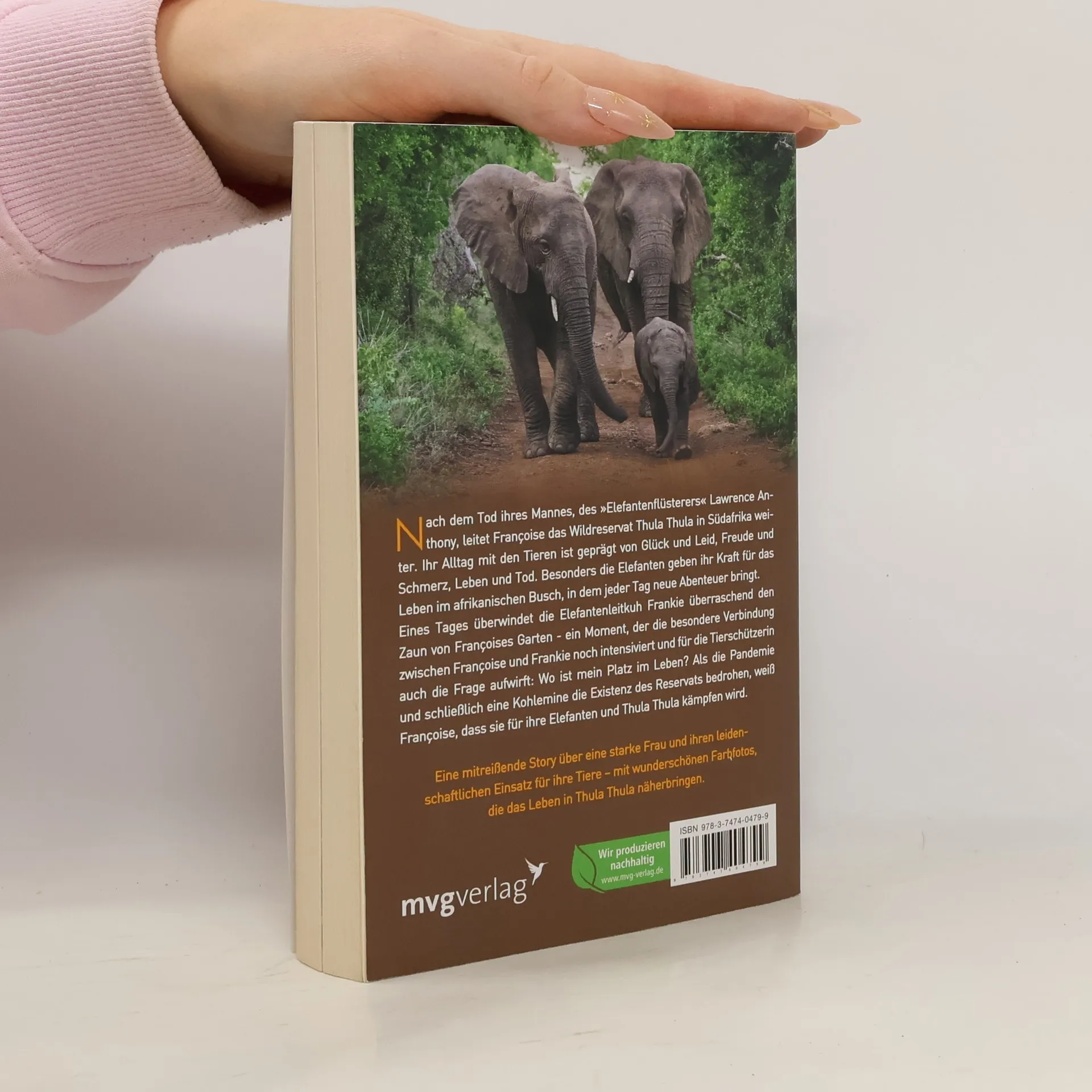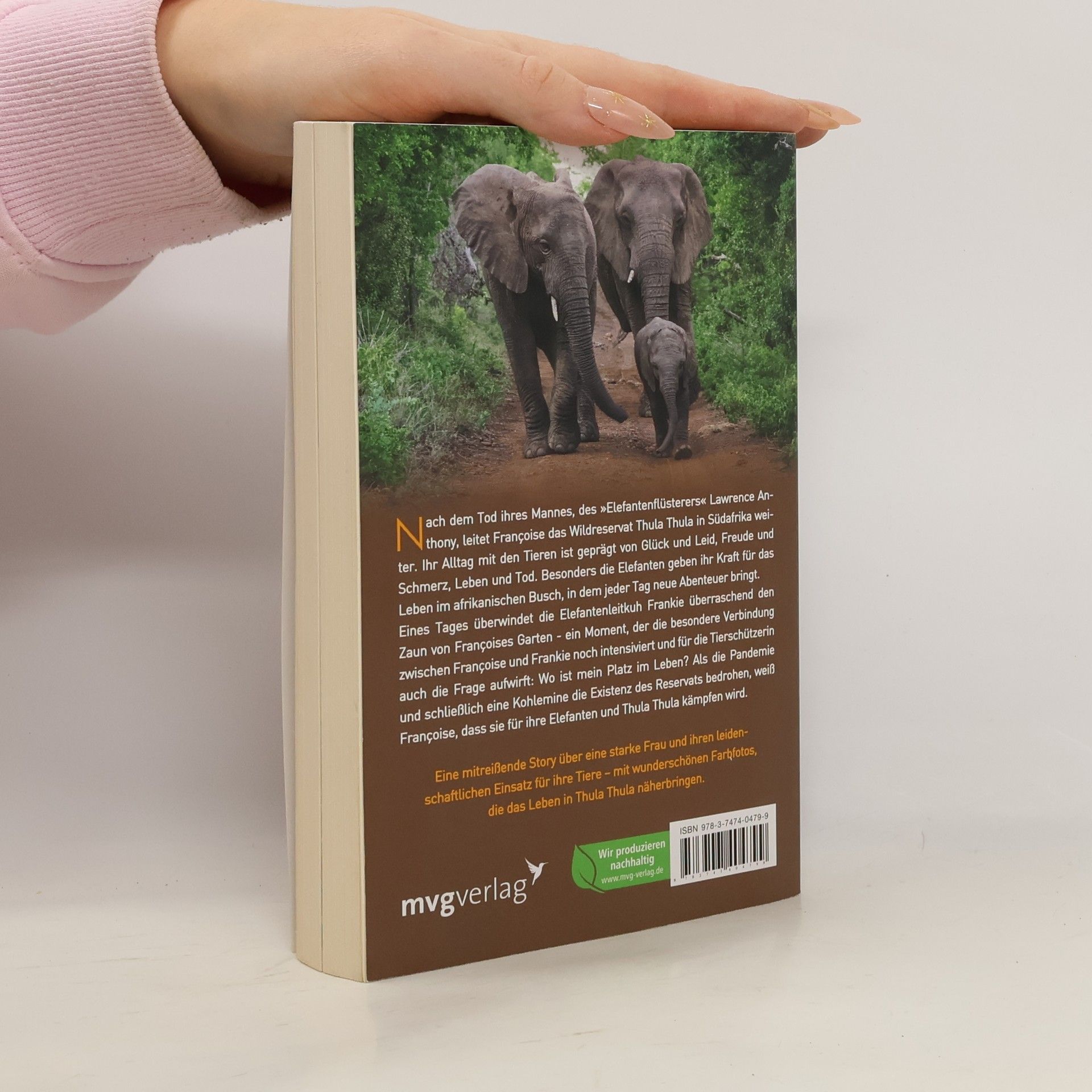 Nach dem Tod ihres Mannes, des »Elefantenflüsterers« Lawrence Anthony, leitet Françoise das Wildreservat Thula Thula in Südafrika weiter. Ihr Alltag mit den Tieren ist geprägt von Glück und Leid, Freude und Schmerz, Leben und Tod. Besonders die Elefanten geben ihr Kraft für das Leben im afrikanischen Busch, in dem jeder Tag neue Abenteuer bringt. Eines Tages überwindet die Elefantenleitkuh Frankie überraschend den Zaun von Françoises Garten - ein Moment, der die besondere Verbindung zwischen Françoise und Frankie noch intensiviert und für die Tierschützerin auch die Frage aufwirft: Wo ist mein Platz im Leben? Als die Pandemie und schließlich eine Kohlemine die Existenz des Reservats bedrohen, weiß Françoise, dass sie für ihre Elefanten und Thula Thula kämpfen wird. Eine mitreißende Story über eine starke Frau und ihren leidenschaftlichen Einsatz für ihre Tiere – mit wunderschönen Farbfotos, die das Leben in Thula Thula näherbringen.