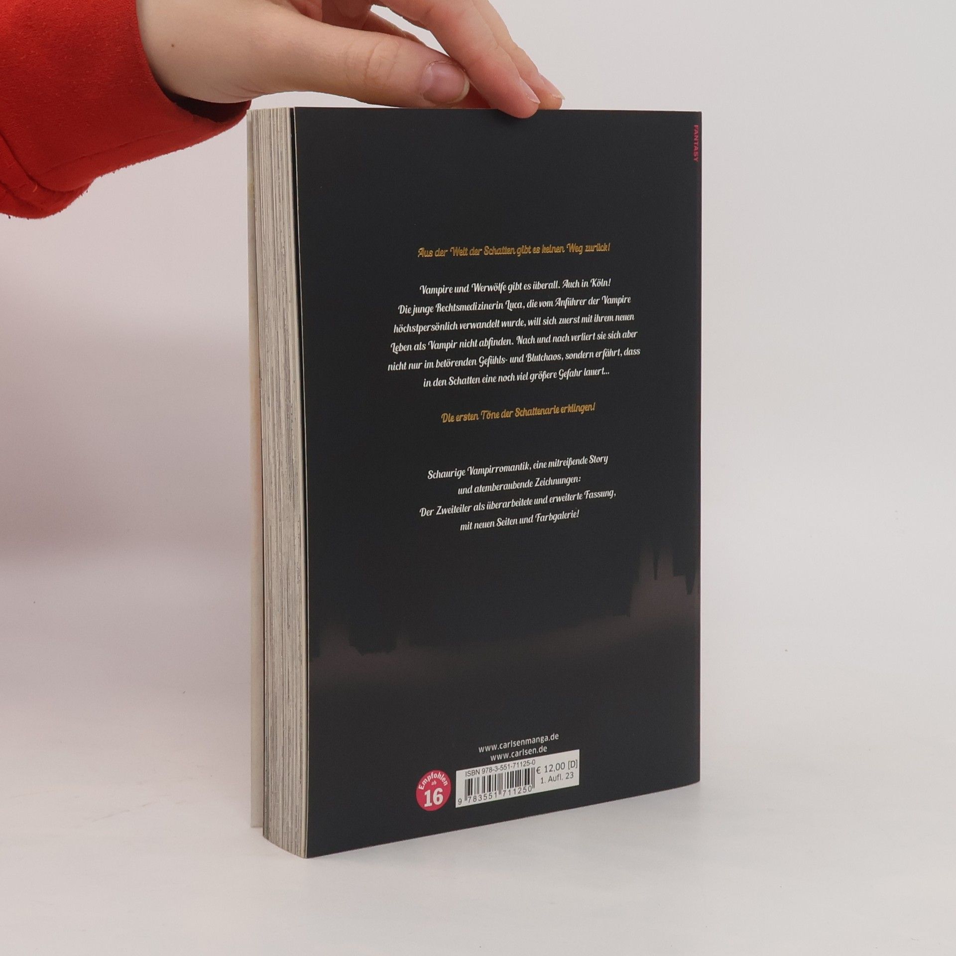 Aus der Welt der Schatten gibt es keinen Weg zurück...! Vampire und Werwölfe gibt es überall. Auch in Köln! Die junge Rechtsmedizinerin Luca, die vom Anführer der Vampire höchstpersönlich verwandelt wurde, will sich zuerst mit ihrem neuen Leben als Vampir nicht abfinden. Nach und nach verliert sie sich aber nicht nur im betörenden Gefühls- und Blutchaos, sondern erfährt, dass in den Schatten eine noch viel größere Gefahr lauert… Die ersten Töne der Schattenarie erklingen! Schaurige Vampirromantik direkt aus Deutschland - mit atemberaubenden Zeichnungen von Zofia Garden (“Killing Jago”, “BL is magic”) und einer mitreißenden Story von Anne Delseit („LILIENTOD“). Weitere Infos: Überarbeitete Version mit neuen Seiten und Farbgalerie! In zwei Bänden abgeschlossen. Atmosphärisches Fantaysdrama mit Schauplatz Köln! Für Vampir-Fans ab 16 Jahren