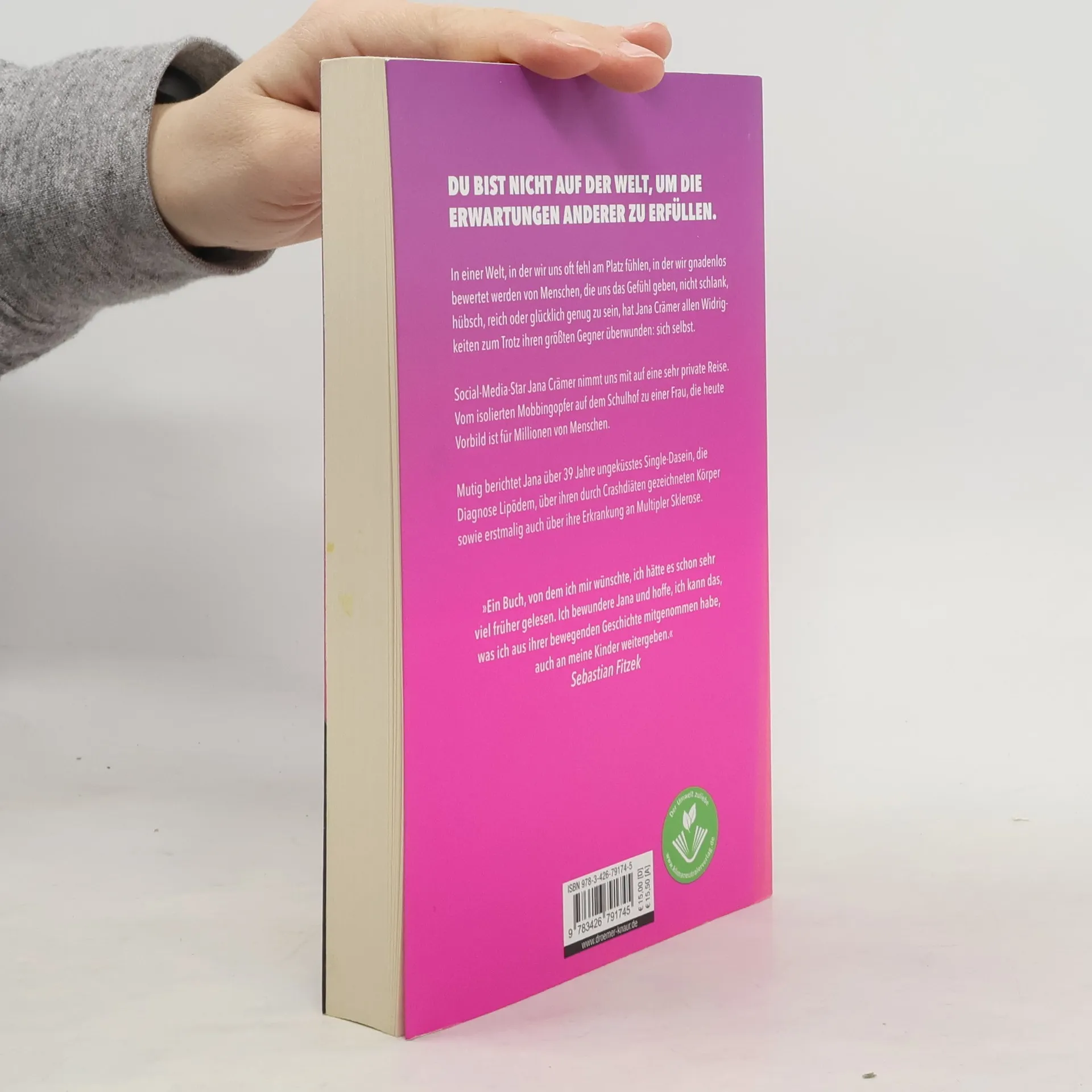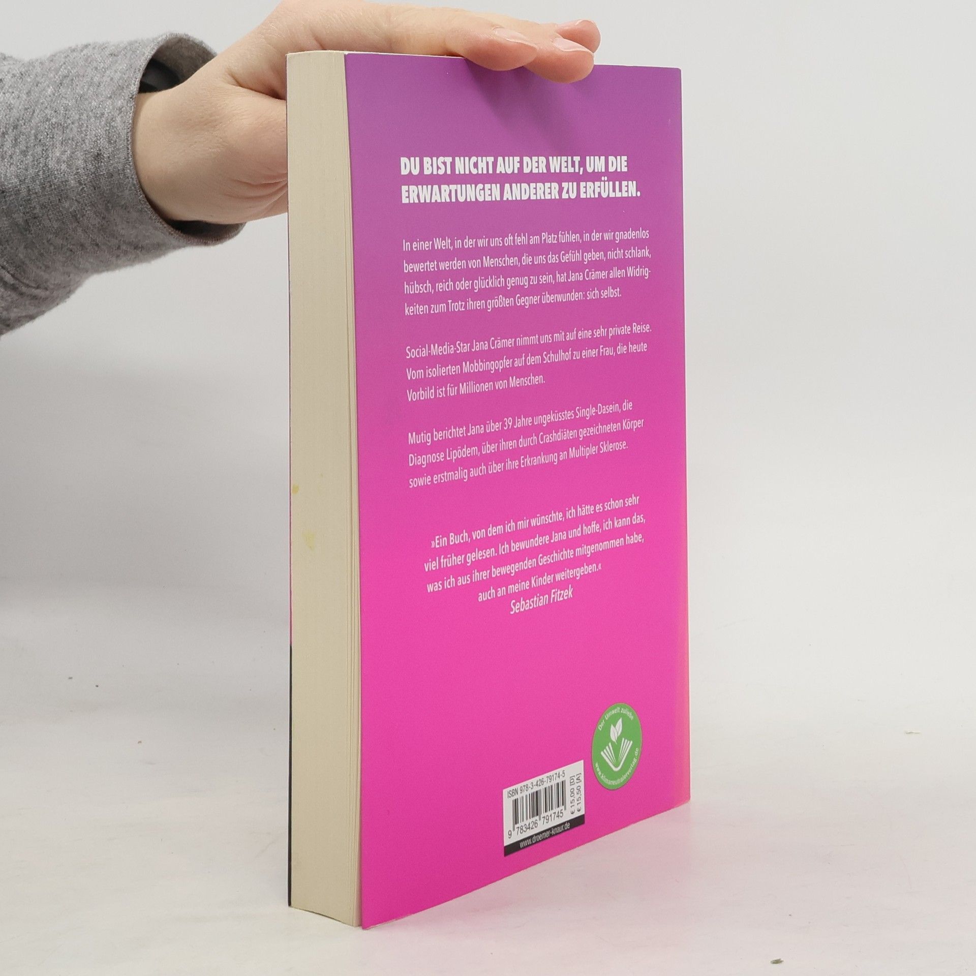 Ein Buch, von dem ich mir wünschte, ich hätte es schon viel früher gelesen. Ich bewundere Jana und hoffe, ich kann das, was ich aus ihrer bewegenden Geschichte mitgenommen habe, auch an meine Kinder weitergeben. Dies ist eine wahre Geschichte! Jana Crämer ist 39 Jahre alt, smart, sympathisch, humorvoll und beruflich erfolgreich. Doch sie hat noch nie einen Mann geküsst oder Händchen gehalten. Obwohl sich zu verlieben ihr großer Traum ist, ist sie in all den Jahren nicht zerbrochen. In einer Welt, in der wir oft das Gefühl haben, nicht genug zu sein, hat Jana ihren größten Gegner überwunden: sich selbst. »Jana, 39, ungeküsst« ist ein berührendes und mutmachendes Buch, das uns auf eine private Reise mitnimmt. Von einem isolierten Mobbing-Opfer, das unter Essstörungen, Bodyshaming und Selbsthass leidet, zu einer Frau, die heute Millionen in den sozialen Netzwerken inspiriert, wenn sie sagt: »Ich bin Jana, 39, ungeküsst und trotzdem glücklich. Wenn ich es geschafft habe, dann schaffst Du das auch.« Ein Buch für alle, die sich allein in einem vollen Raum fühlen, sich wegen ihrer Konfektionsgröße schämen oder aus anderen Gründen der Norm nicht entsprechen.