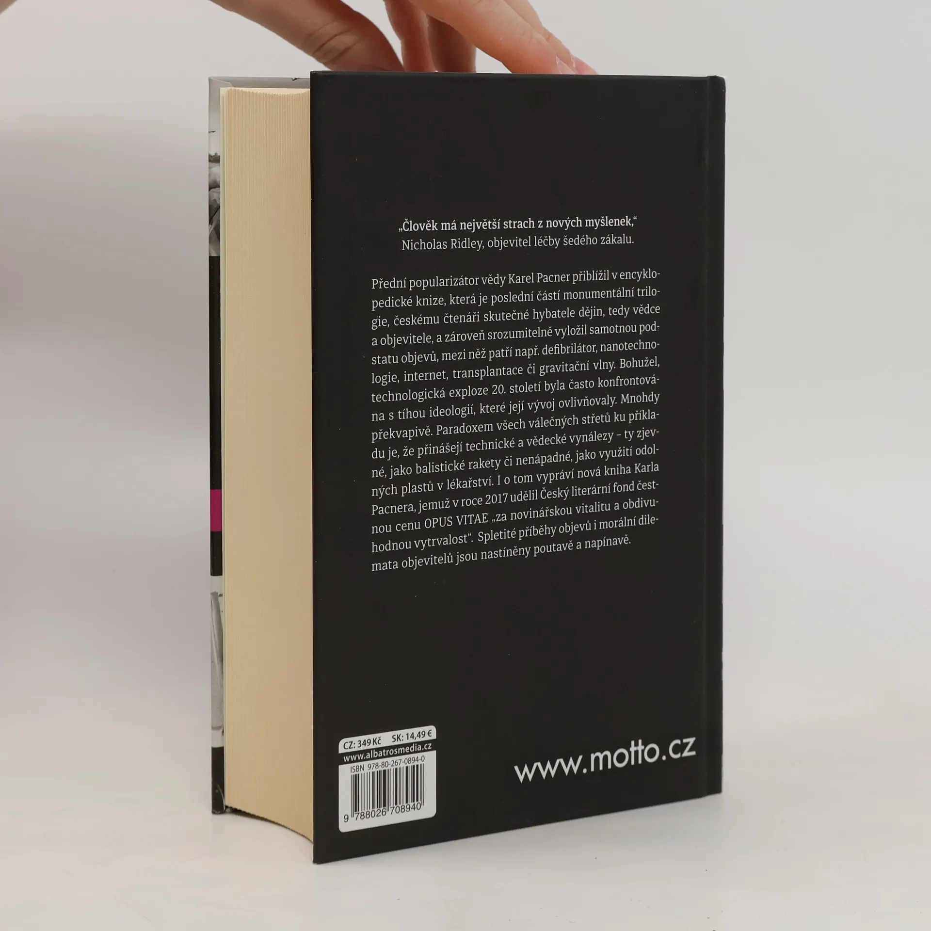 Přední popularizátor vědy Karel Pacner přiblížil v monumentální encyklopedické knize českému čtenáři skutečné hybatele dějin, tedy vědce a objevitele a zároveň srozumitelně vyložil samotnou podstatu objevů, mezí než patří defibrilátor, nanotechnologie, internet, transplantace či balistické rakety. Bohužel, technologická exploze 20. století byla často konfrontována s tíhou ideologií, které její vývoj mnohdy ovlivňovaly. Spletité příběhy obejvů i morální dilemata objevitelů jsou nastíněny poutavě a napínavě.
