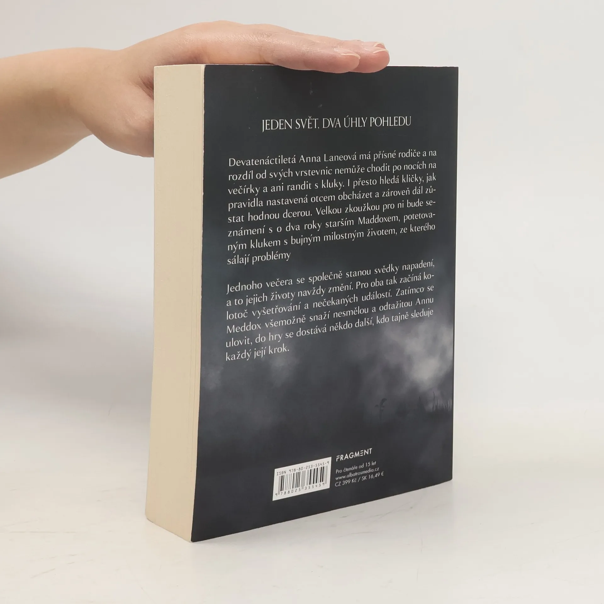 Každý z nich je úplně jiný, a přece se přitahují jako magnety. Napínavý román pro ty, co ještě nepřestali věřit v pravou lásku. Devatenáctiletá Anna Laneová má přísné rodiče, a tak na rozdíl od svých vrstevnic nemůže chodit na večírky ani randit s kluky. I přesto hledá kličky, jak pravidla obcházet. Jednoho dne se stane svědkyní přepadení. Nepříjemná událost ji svede dohromady s o dva roky starším Maddoxem. Pro oba tím začíná kolotoč vyšetřování a nečekaných událostí. A zatímco se Maddox snaží Annu ulovit, do hry se dostává někdo další, kdo tajně sleduje každý její krok.