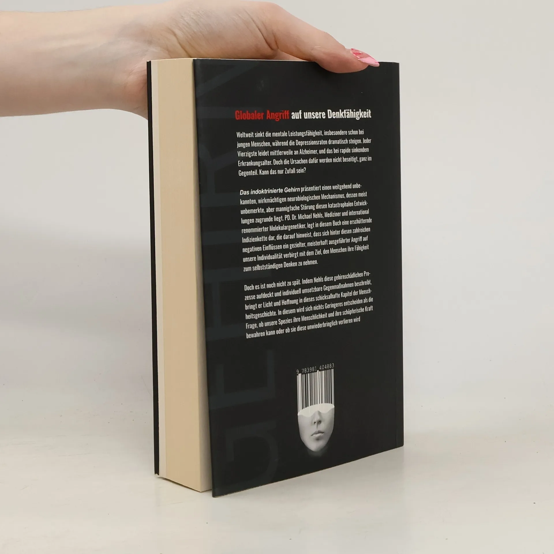 Weltweit sinkt die mentale Leistungsfähigkeit, insbesondere schon bei jungen Menschen, während die Depressionsraten dramatisch steigen. Jeder Vierzigste leidet mittlerweile an Alzheimer, und das bei rapide sinkendem Erkrankungsalter. Doch die Ursachen dafür werden nicht beseitigt, ganz im Gegenteil. Kann das nur Zufall sein? Das indoktrinierte Gehirn präsentiert einen weitgehend unbekannten, wirkmächtigen neurobiologischen Mechanismus, dessen meist unbemerkte, aber mannigfache Störung diesen katastrophalen Entwicklungen zugrunde liegt. PD. Dr. Michael Nehls, Mediziner und international renommierter Molekulargenetiker, legt in diesem Buch eine erschütternde Indizienkette dar, die darauf hinweist, dass sich hinter diesen zahlreichen negativen Einflüssen ein gezielter, meisterhaft ausgeführter Angriff auf unsere Individualität verbirgt mit dem Ziel, den Menschen ihre Fähigkeit zum selbstständigen Denken zu nehmen. Doch es ist noch nicht zu spät. Indem Nehls diese gehirnschädlichen Prozesse aufdeckt und individuell umsetzbare Gegenmaßnahmen beschreibt, bringt er Licht und Hoffnung in dieses schicksalhafte Kapitel der Menschheitsgeschichte. In diesem wird sich nichts Geringeres entscheiden als die Frage, ob unsere Spezies ihre Menschlichkeit und ihre schöpferische Kraft bewahren kann oder ob sie diese unwiederbringlich verlieren wird.