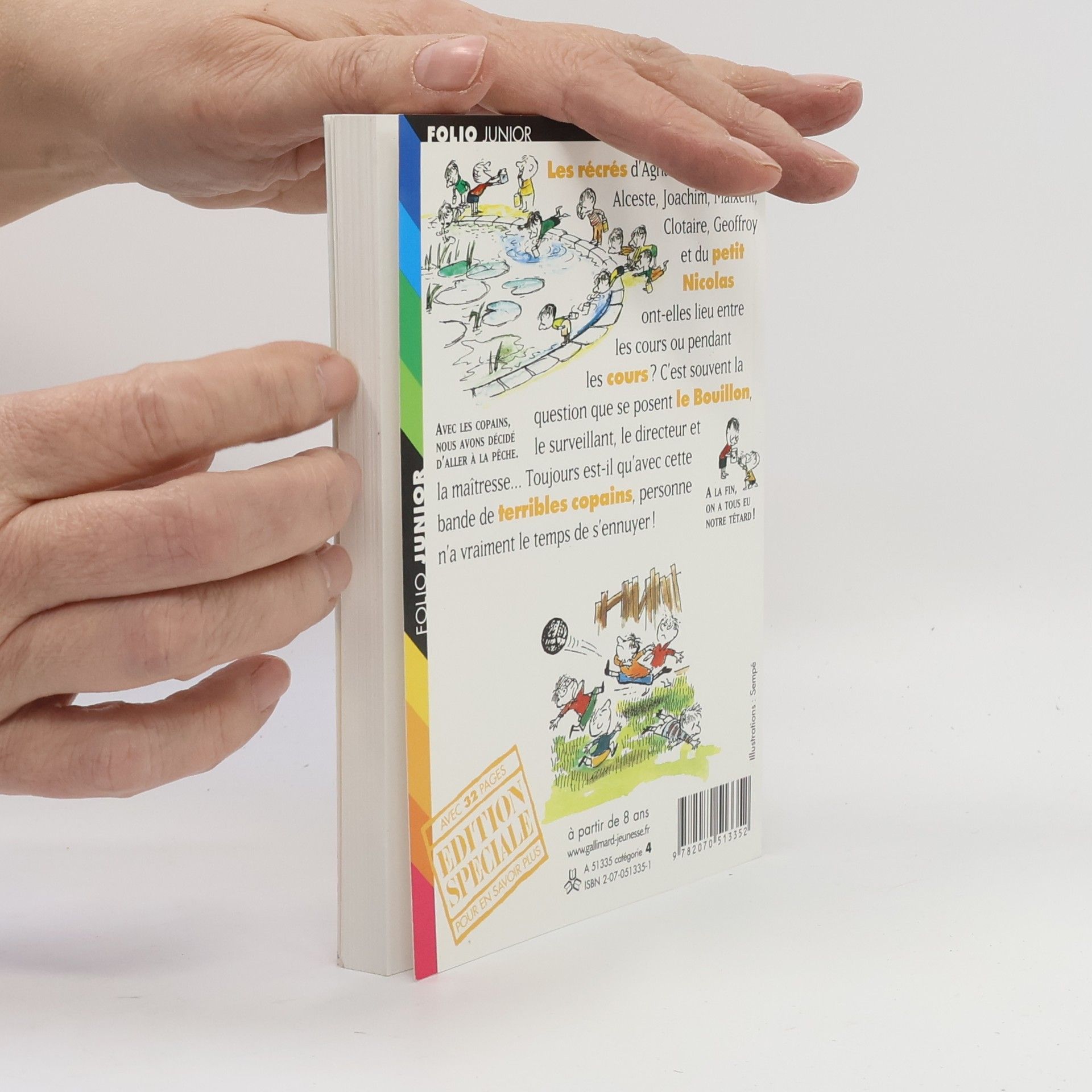 Les récrés d'Agnan, Eudes, Rufus, Alceste, Joachim, Maixent, Clotaire, Geoffroy et du petit Nicols ont-elles lieu entre les cours ou pendant les cours ? C'est souvent la question que se posent le Bouillon, le surveillant, le directeur et la maîtresse... Toujours est-il qu'avec cette bande de terribles copains, personne n'a vraiment le temps de s'ennuyer !