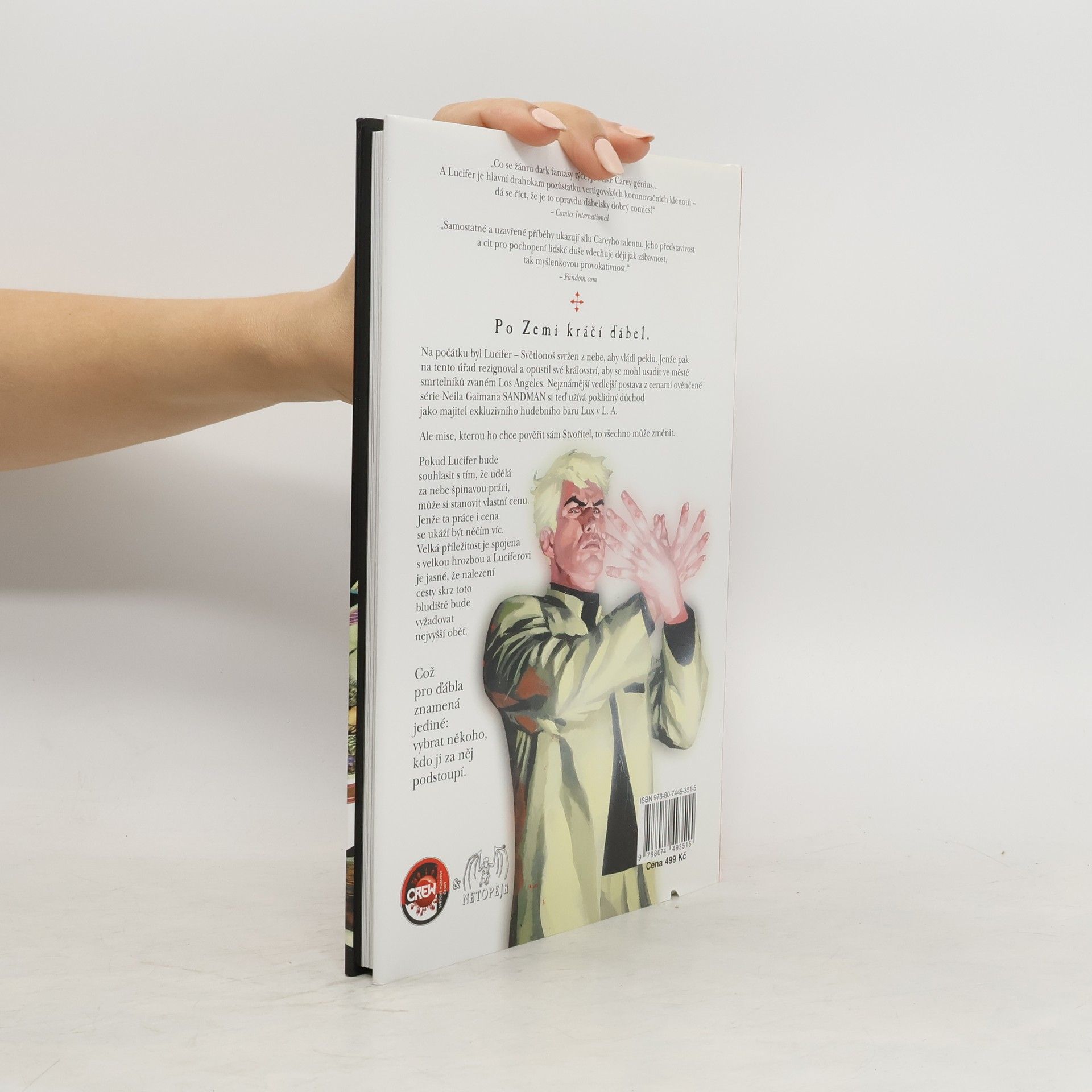 Po Zemi kráčí ďábel. Na počátku byl Lucifer - Světlonoš svržen z nebe, aby vládl peklu. Jenže pak na tento úřad rezignoval a opustil své království, aby se mohl usadit ve městě smrtelníků zvaném Los Angeles. Nejznámější vedlejší postava z cenami ověnčené série Neila Gaimana Sandman si teď užívá poklidný důchod jako majitel exkluzivního hudebního baru Lux v L.A. Ale mise, kterou ho chce pověřit sám Stvořitel, to všechno může změnit. Pokud Lucifer bude souhlasit s tím, že udělá za nebe špinavou práci, může si stanovit vlastní cenu. Jenže ta práce i cena se ukáží být něčím víc. Velká příležitost je spojena s velkou hrozbou a Luciferovi je jasné, že nalezení cesty skrz toto bludiště bude vyžadovat nejvyšší oběť. Což pro ďáble znamená jediné: vybrat někoho, kdo ji za něj podstoupí.