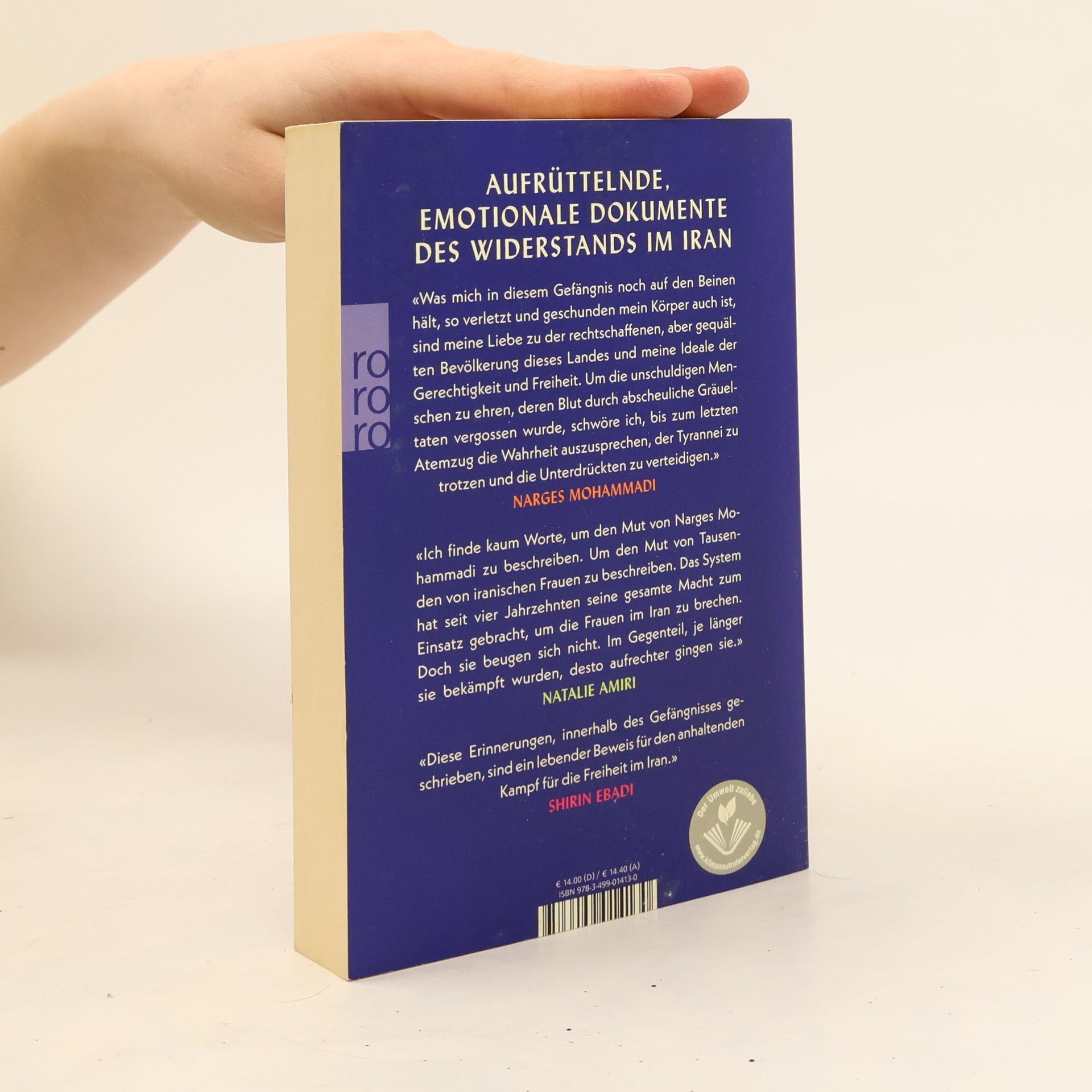 Aufrüttelnde, emotionale Dokumente des Widerstands im Iran Narges Mohammadi, Menschenrechtsaktivistin und Trägerin des Friedensnobelpreises 2023, versammelt in ihrem Buch 13 Interviews mit im Iran inhaftierten Frauen, zu denen auch die international bekannte Journalistin Nazanin Zaghari-Ratcliffe gehört. In den während der Haft der Autorin heimlich geführten Interviews zeigen sich unhaltbare Haftzustände, aber auch unglaublicher Mut, Zusammenhalt und große solidarische Stärke, die auch die in den Haftanstalten praktizierte weiße Folter nicht zu brechen vermag. Die deutsche Übersetzung ist genau wie das persische Original ein Gemeinschaftswerk unterschiedlicher Frauen. Narges Mohammadis Buch ist ein Beweis für die aktuellen Menschenrechtsverletzungen im Iran und ein Aufruf an Unterstützer auf der ganzen Welt, den Kampf nicht aufzugeben. Mit Vorworten von Natalie Amiri und Shirin Ebadi. «Diese Erinnerungen, innerhalb des Gefängnisses geschrieben, sind ein lebender Beweis für den anhaltenden Kampf für die Freiheit im Iran.» Shirin Ebadi, Friedensnobelpreisträgerin