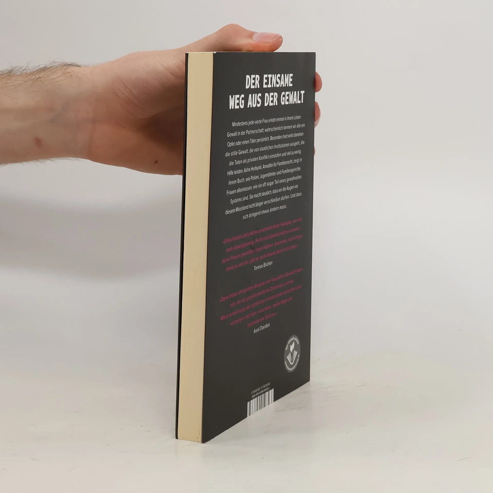 Der einsame Weg aus der Gewalt Gewalt gegen Frauen ist eines der drängendsten Probleme unserer Zeit, sie hat sich in den letzten Jahren noch einmal deutlich verschärft. Asha Hedayati, Anwältin für Familienrecht, beschreibt in ihrem Buch, wie der Staat die betroffenen Frauen alleinlässt, und zeigt auf, was sich ändern muss, damit die zuständigen Institutionen wirklich den Schutz bieten, den sie leisten sollten. Die Autorin macht immer wieder die Erfahrung, dass die staatlichen Strukturen Frauen nicht nur unzureichend vor Gewalt schützen, sondern sogar selbst Teil eines gewaltvollen Systems sind. Partnerschaftsgewalt ist wie ein blinder Fleck bei Familiengerichten, Polizei und Jugendämtern, in Sorge- und Umgangsrechtsverfahren. Dabei ist jede vierte Frau ist einmal in ihrem Leben von Gewalt in ihrer Partnerschaft betroffen; mit großer Sicherheit haben wir alle im Bekannten- und Freundeskreis sowohl Betroffene als auch Täter. «Entschieden und präzise beschreibt Asha Hedayati, wie viel mehr Gesetzgebung, Recht und Gesellschaft tun müssen, damit Frauen gewaltfrei leben können. Ausreden, noch länger damit zu warten, gibt es nach diesem Buch nicht mehr.» Teresa Bücker «Dank dieser dringlichen Analyse von häuslicher Gewalt finden alle, die die gesellschaftliche Dimension und die Mitverantwortung der staatlichen Institutionen verstehen und verändern möchten, eine klare, hellsichtige und bestärkende Stimme.» Asal Dardan