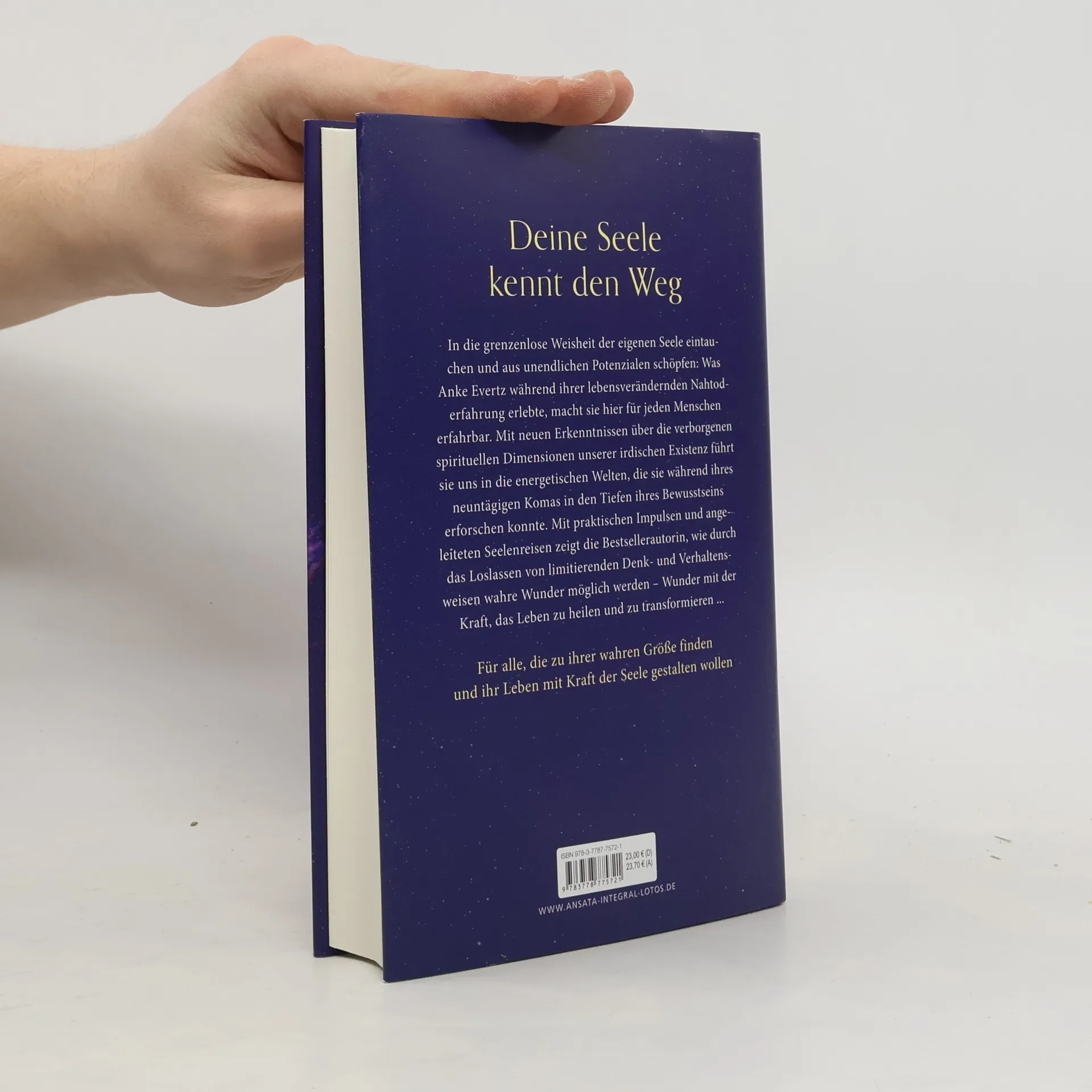 Tauche in die grenzenlose Weisheit deiner Seele ein und schöpfe aus ihren unendlichen Potenzialen – erfahre, wer du wirklich bist und durchlichte dein Leben! Was Anke Evertz während ihrer lebensverändernden Nahtoderfahrung erlebte, ist spannend, Augen öffnend und transformierend zugleich. Mit neuen Einsichten in die verborgenen spirituellen Dimensionen unserer irdischen Existenz führt sie uns in die energetischen Welten der Liebe, Verbundenheit und Resonanz. Das, was sie während ihres neuntägigen Komas in den Tiefen ihres Bewusstseins erforschen konnte, macht sie in ihrem zweiten Buch für jeden Menschen erfahr- und spürbar. Mit praktischen Impulsen und angeleiteten Seelenreisen zeigt die Bewusstseinstrainerin, wie durch das Loslassen limitierender Denk- und Verhaltensweisen wahre Wunder möglich werden – Wunder mit der Kraft, unser Leben zu heilen, zu bereichern und von innen heraus zu transformieren ... Die Seele kennt den Weg: Wie wir zu unserer wahren Größe finden und das Leben unserer Träume erschaffen Von der Autorin des Bestsellers »Neun Tage Unendlichkeit« Mit sechs Bewusstseinsreisen zum Gratis-Online-Abruf als Audiodatei