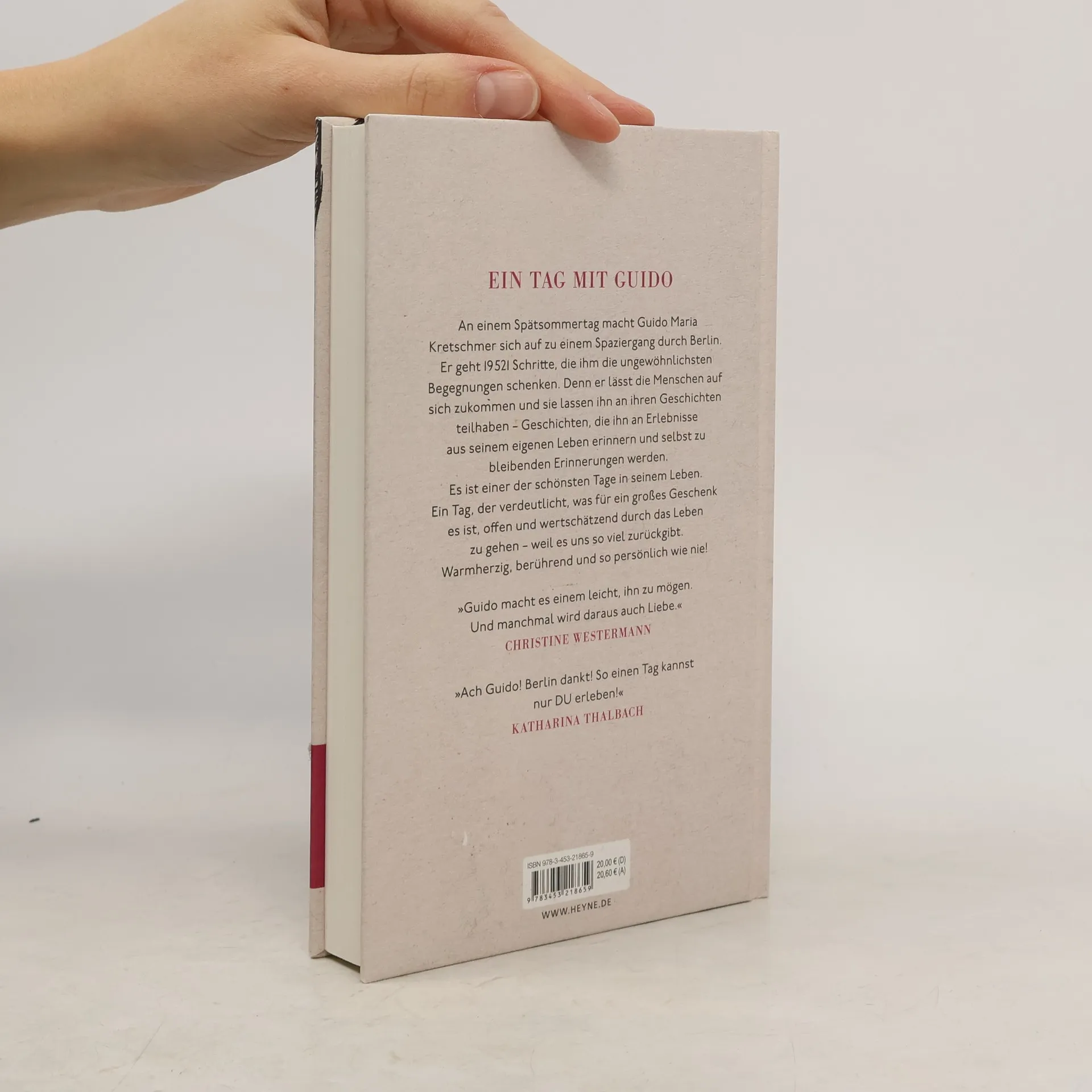 Ein Spätsommertag in Berlin wird für Guido Maria Kretschmer zu einem besonderen Erlebnis, als er beschließt, offen und ungeschützt durch die Stadt zu gehen. Ohne Maske oder Sonnenbrille begegnet er Menschen, die ihm ihre Geschichten anvertrauen, weil sie das Gefühl haben, ihn zu kennen. Unter diesen Begegnungen ist Chanti, die bald nach Indien fliegt, um ihre Internet-Liebe zu treffen, und Petra, die mit Mitte fünfzig ihr Leben hinterfragt, nachdem sie eine Frau lieben gelernt hat. Diese Geschichten erinnern Guido an eigene Erfahrungen und zeigen, dass wir unsere Erlebnisse mitnehmen, egal wohin wir gehen. Jede Begegnung hat das Potenzial, eine bleibende Erinnerung zu schaffen und uns neue Perspektiven zu eröffnen. An diesem Tag legt Guido 19.521 Schritte zurück und entdeckt seine geliebte Stadt aus einer neuen Sicht. Es wird einer der schönsten Tage seines Lebens, der ihm verdeutlicht, wie wertvoll es ist, offen und wertschätzend zu leben, da uns diese Haltung so viel zurückgibt.