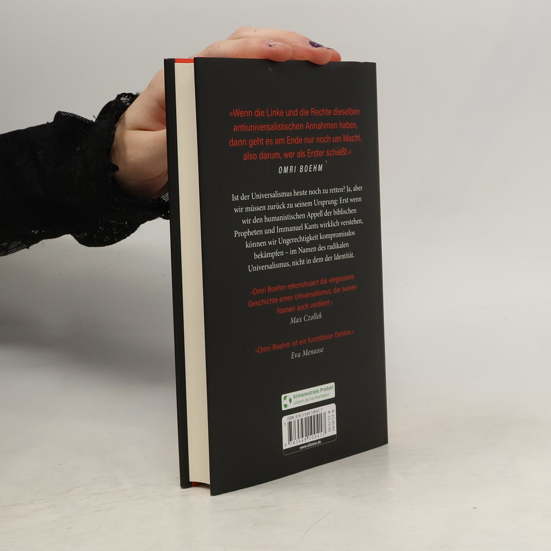 Die Ideologie der Identität hält das gesamte politische Spektrum besetzt – während die Linke in Kategorien von race und gender kämpft, betreibt die Rechte Politik im Namen der Nation. Und der Universalismus? Geschrumpft auf eine leere Hülle. Denn der moderne Liberalismus ist alles andere als Humanismus: Anstatt die von Kant postulierten, absoluten Pflichten gegenüber den Menschen zu schützen, schützt der Liberalismus die Interessen der Bürger. Nicht ohne Grund prangern ihn deshalb viele als Rassismus an. Omri Boehm führt uns zurück zum Ursprung, zum radikalen Universalismus der jüdischen Propheten und ihrer Wiederentdeckung durch Immanuel Kant. Sein Buch ist ein eindringliches Plädoyer, diesen humanistischen Universalismus zum Leben zu erwecken.