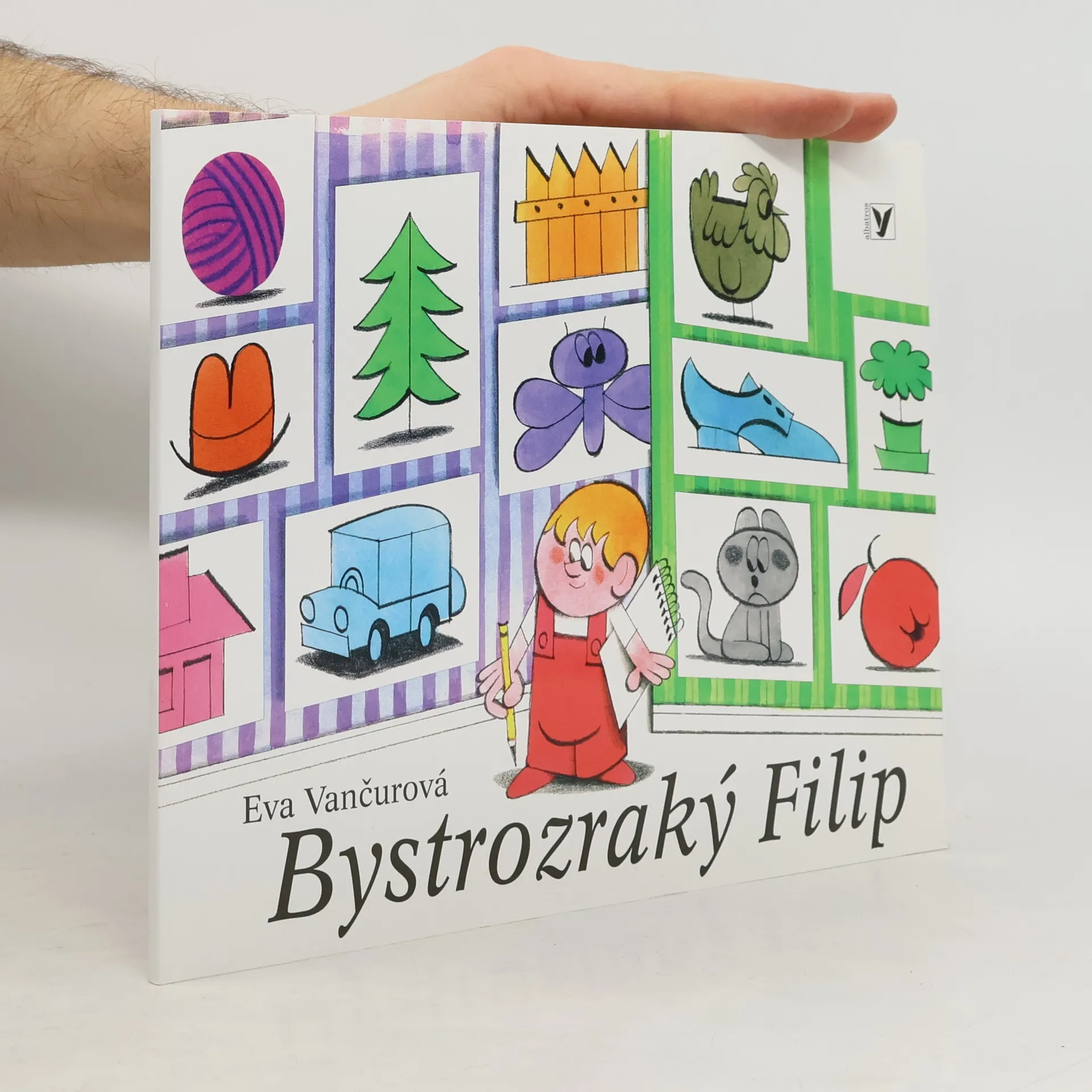 Knížka pro předškoláky. Knížka pro děti i rodiče. Bystrozraký Filip se zaměřuje hlavně na stále přesnější pozorování a určování viditelných vlastností věcí, hledání podobností, shod a rozdílů, srovnávání, třídění a objevování souvislostí. Pracujeme střídavě s „knížkou“ (první část) a Filipovým sešitem.