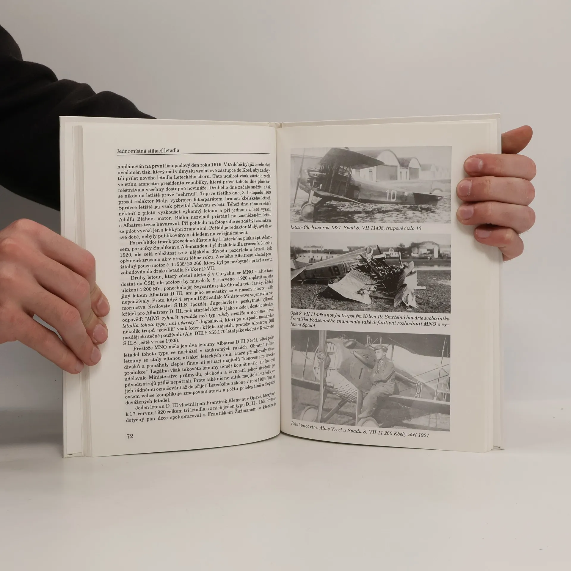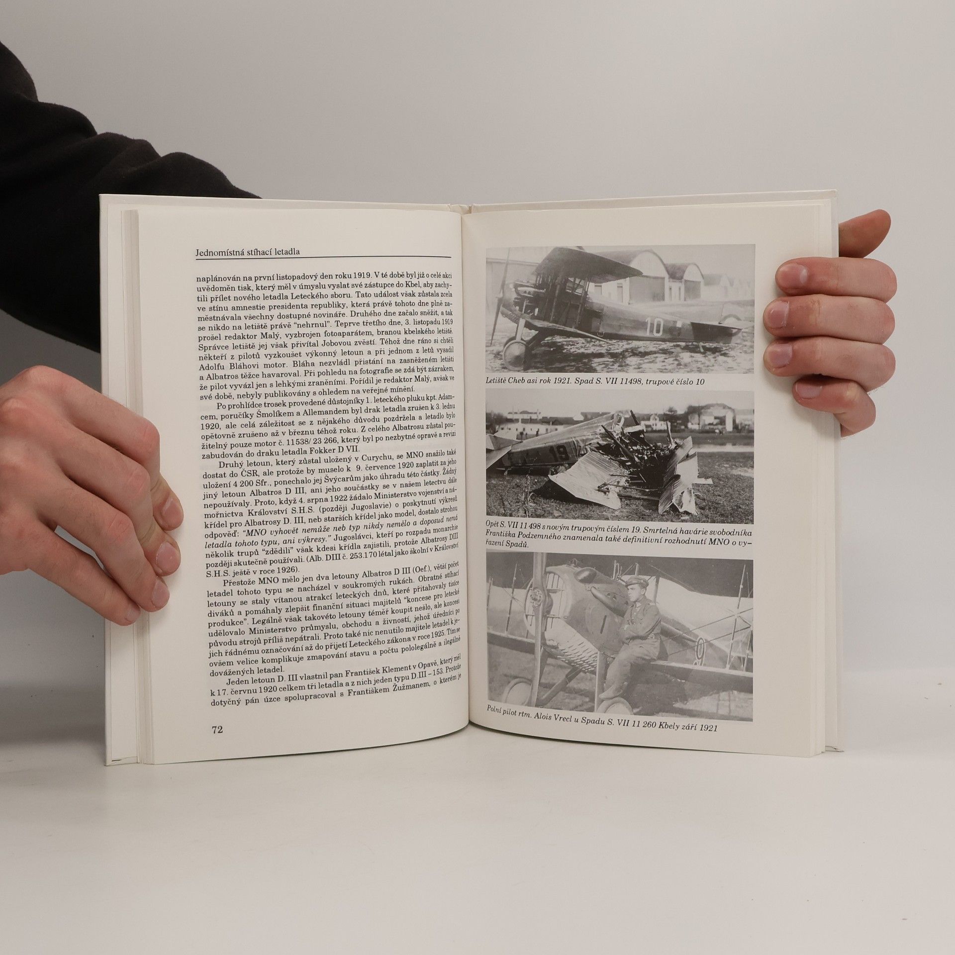Jednomístná stíhací letadla. V prvním dílu plánovaného cyklu se čtenář dozví archivně podložené skutečnosti o vzniku československého stíhacího letectva po říjnu 1918. Páteř knihy tvoří rozsáhlá stať o letounech Spad VII a Spad XIII, která zachycuje dějiny našeho popřevratového letectví. Další kapitoly pak popisují letouny Fokker DVII, Roland DVIb, Berg, Nieuport, Albatros Oeffeg a další, které se kdy ocitly na území Čech, Moravy a Slovenska.... celý text
