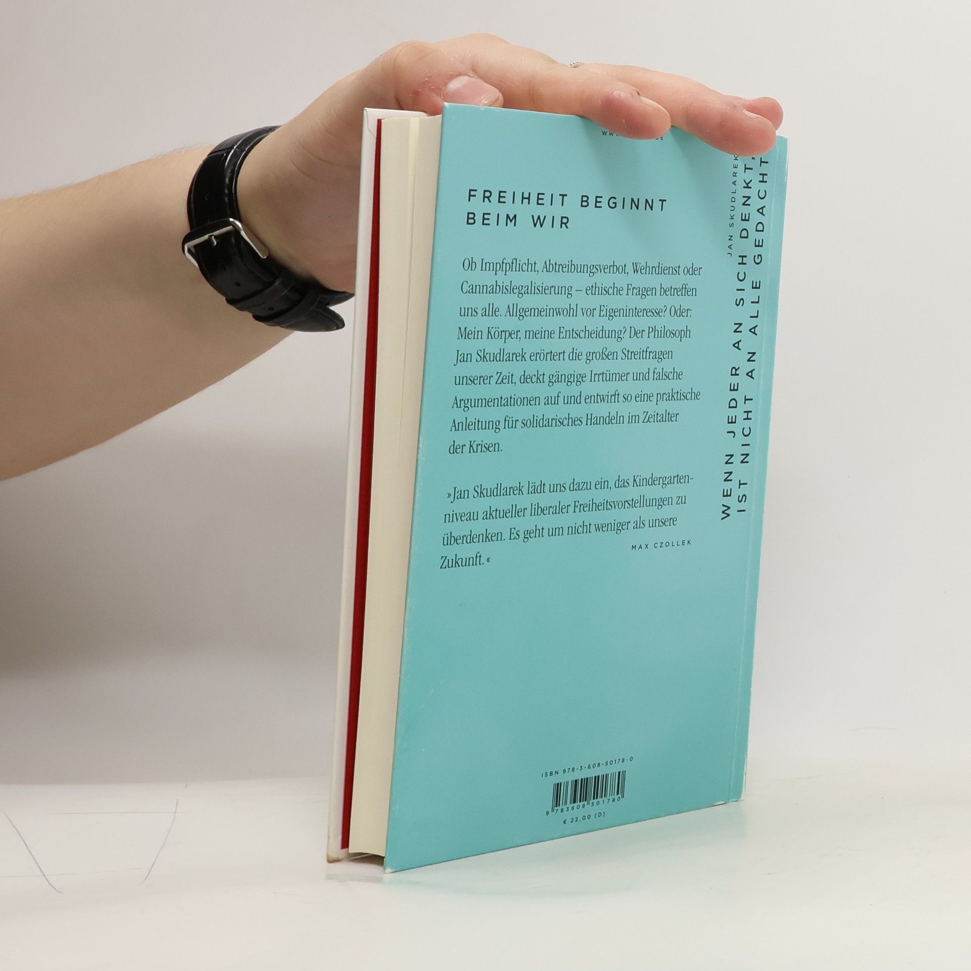 Jan Skudlarek lädt uns ein, das aktuelle Niveau liberaler Freiheitsvorstellungen zu überdenken. Ethische Fragen wie Impfpflicht, Abtreibungsverbot und Cannabislegalisierung betreffen uns alle. Der Philosoph erörtert zentrale Streitfragen unserer Gesellschaft, deckt Irrtümer und falsche Argumentationen auf und bietet eine Handreichung für solidarisches Handeln in Krisenzeiten. Vor über vierzig Jahren stellte Hans Jonas in seinem Hauptwerk die Frage, wo die Freiheit des Einzelnen endet. Heute ist die Debatte über Freiheit und Verantwortung drängender denn je. Was bedeutet Verantwortung? Warum fällt sie uns schwer? Und warum führt individuelles Denken nicht zu einem gemeinsamen Wohl? Die gegenwärtigen Krisen zeigen, dass menschliche Gemeinschaft mehr ist als die Summe egoistischer Individuen. Wie gelingt gesellschaftlicher Zusammenhalt in Krisenzeiten? Skudlarek entwirft ein neues Wir, das Freiheit und Selbstbestimmung vereint und solidarisch ist. Dieses Wir trägt und verbindet, anstatt auszugrenzen. Wenn Freiheit toxisch wird, ist Solidarität die Antwort. Skudlarek präsentiert einen neuen Freiheitsbegriff, der uns durch die Krisen unserer Zeit leitet. Ein kluges, differenziertes Werk.