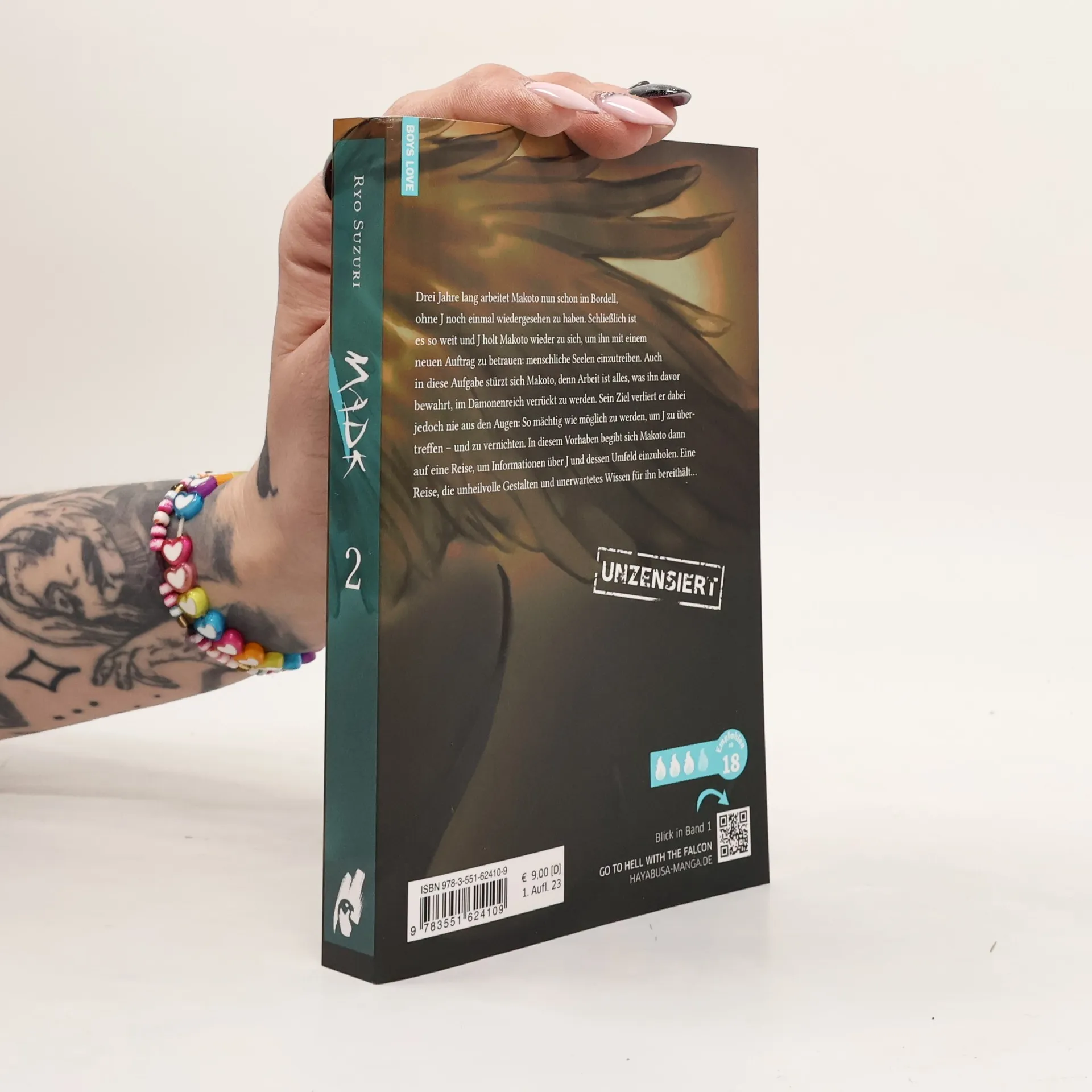 Drei Jahre lang arbeitet Makoto nun schon im Bordell, ohne J noch einmal wiedergesehen zu haben. Schließlich ist es so weit und J holt Makoto wieder zu sich, um ihn mit einem neuen Auftrag zu betrauen: menschliche Seelen einzutreiben. Auch in diese Aufgabe stürzt sich Makoto, denn Arbeit ist alles, was ihn davor bewahrt, im Dämonenreich verrückt zu werden. Sein Ziel verliert er dabei jedoch nie aus den Augen: So mächtig wie möglich zu werden, um J zu übertreffen – und zu vernichten. In diesem Vorhaben begibt sich Makoto dann auf eine Reise, um Informationen über J und dessen Umfeld einzuholen. Eine Reise, die unheilvolle Gestalten und unerwartetes Wissen für ihn bereithält… Weitere Informationen: Spice-Level: 3 von 4 Flammen. Ein Boys-Love-Titel mit heißen Fantasien und einem klaren Fokus auf Erotik. Abgeschlossen in 3 Bänden Bizarr, brutal, abgedreht erotisch – der zweite Band der düsteren Boys-Love-Story im Abgrund der Hölle!