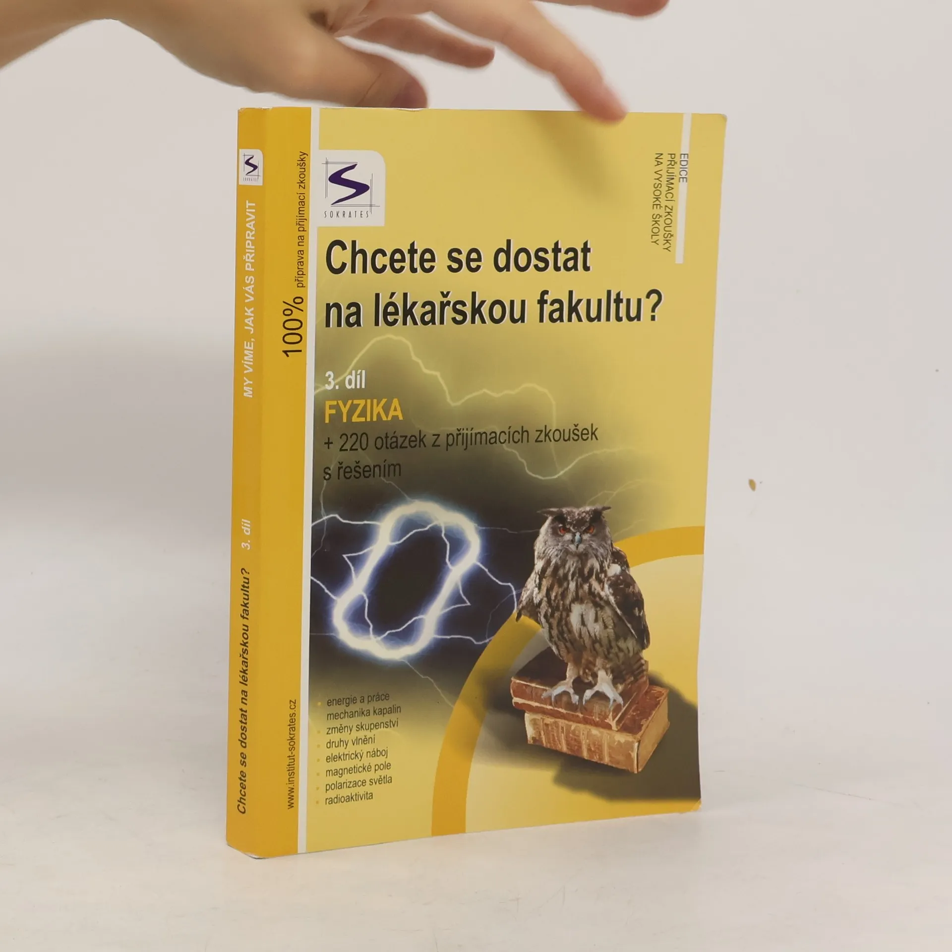 Kniha je jedinečnou pomůckou určenou uchazečům o studium na lékařských fakultách, obsahuje teoretické shrnutí problematiky +220 testových otázek z minulých přijímacích zkoušek s řešením, a to z fyziky. Je určena pro adepty na lékařskou fakultu UK v Praze, Lékařskou fakultu MU v Brně, Lékařskou fakultu UP v Olomouci, Veterinární a farmaceutickou univerzitu Brno a ostatní VŠ tohoto směru. ktuální pro rok 2007!!! Publikaci je vhodné zkombinovat s vysvětlením problematiky v dalších dílech.