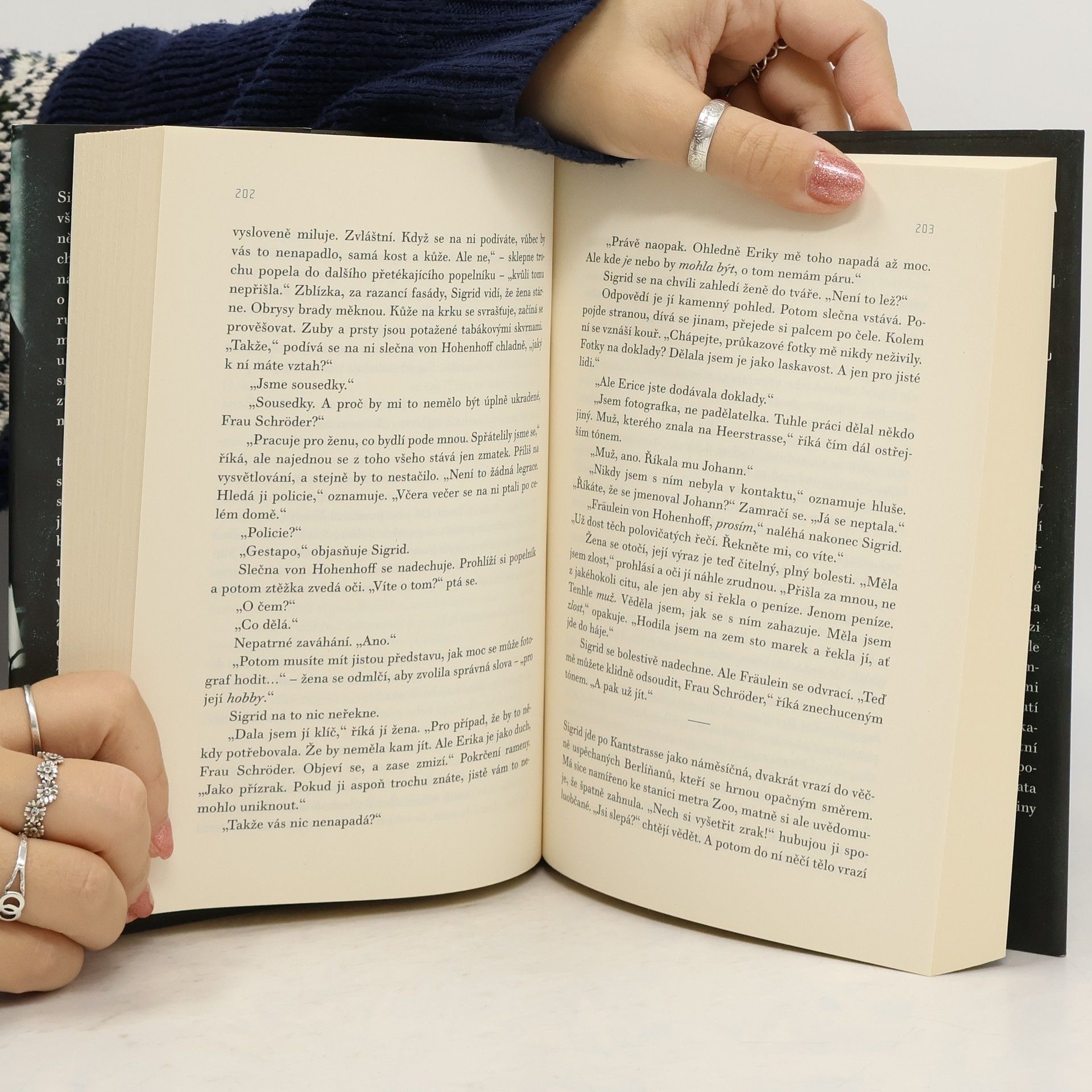 Román o obyčejných lidech v neobyčejné době. O malých rozhodnutích s obrovskými důsledky Píše se rok 1943 a druhá světová válka dosahuje svého vrcholu. Muži jsou na frontě, a tak se z Berlína stává město žen. Sigrid Schröderová je typická Němka: manžel bojuje na frontě a ona pracuje, snaží se vyjít s přídělovými lístky a stará se o hašteřivou tchýni. O zrůdné věci, které nacistický režim provádí, se moc nezajímá. Za touto maskou se ovšem skrývá jiná Sigrid, vášnivá žena, která nedokáže zapomenout na svého bývalého židovského milence, nyní vydanému napospas válečné vřavě. Sigrid ale brzy zjišťuje, že není jediná, kdo má tajemství. Postupně se ukazuje, že není vše jen černé nebo bílé a že člověk může věřit jen sám sobě. A Sigrid se dostává do začarovaného kruhu, kdy je těžké říct, co je správné a co špatné, a co je morální a co nemorální.