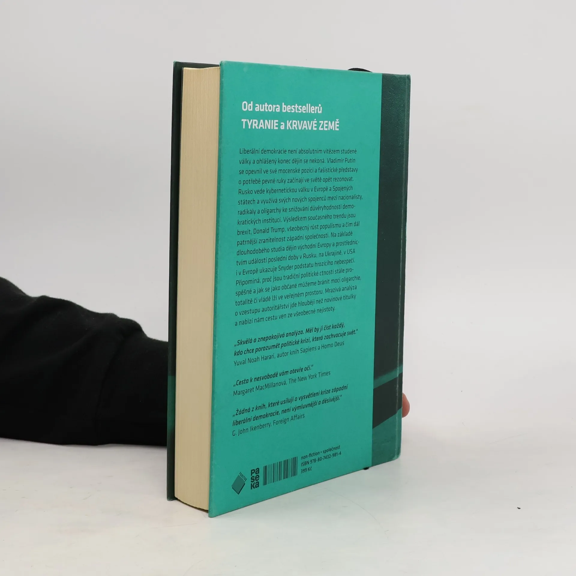 Liberální demokracie není absolutním vítězem studené války a ohlášený konec dějin se nekoná. Vladimir Putin se opevnil ve své mocenské pozici a fašistické představy o potřebě pevné ruky začínají ve světě opět rezonovat. Rusko vede kybernetickou válku v Evropě a Spojených státech, využívá svých nových spojenců mezi nacionalisty, radikály a oligarchy, aby snižovalo důvěryhodnost demokratických institucí. Výsledkem současného trendu jsou brexit, Donald Trump, všeobecný vzestup populismu a čím dál patrnější zranitelnost západní společnosti. Na základě velkoryse pojatého výzkumu a prostřednictvím událostí poslední doby v Rusku, na Ukrajině, v USA i v Evropě ukazuje Snyder podstatu hrozícího nebezpečí. Pomáhá porozumět, proč jsou tradiční politické ctnosti prospěšné a kterou z nabízených možností bychom si měli zvolit: rovnost, nebo oligarchii, individualitu, nebo totalitu, pravdu, nebo lež. Ohromující svědectví o vzestupu autoritářství jde hlouběji než novinové titulky a nabízí nám cestu ven ze všeobecné nejistoty.