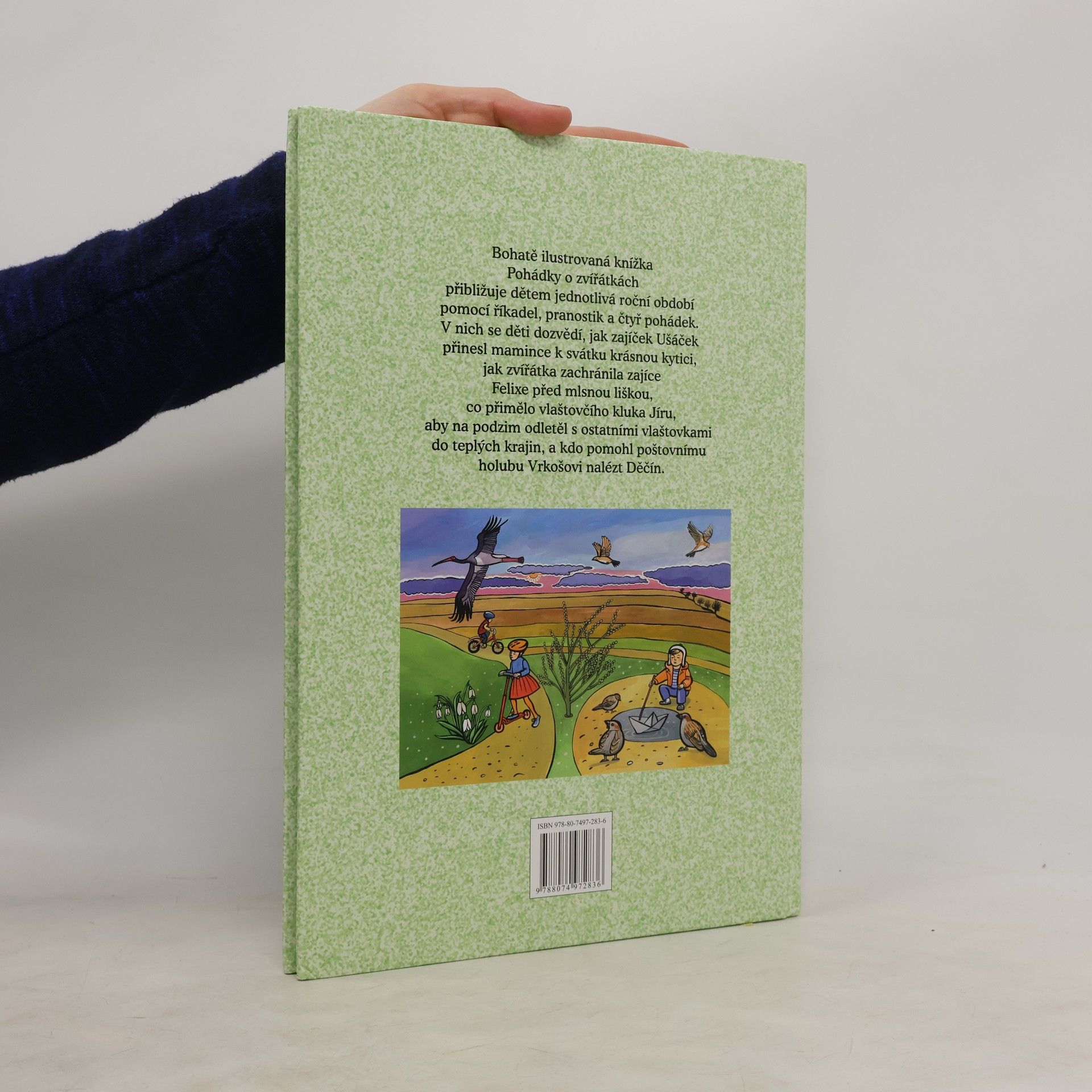Bohatě ilustrovaná knížka Pohádky o zvířátkách přibližuje dětem jednotlivá roční období pomocí říkadel, pranostik a čtyř pohádek. V nich se děti dozvědí, jak zajíček Ušáček přinesl mamince k svátku krásnou kytici, jak zvířátka zachránila zajíce Felixe před mlsnou liškou, co přimělo vlaštovčího kluka Jíru, aby na podzim odletěl s ostatními vlaštovkami do teplých krajin, a kdo pomohl poštovnímu holubu Vrkošovi nalézt Děčín.