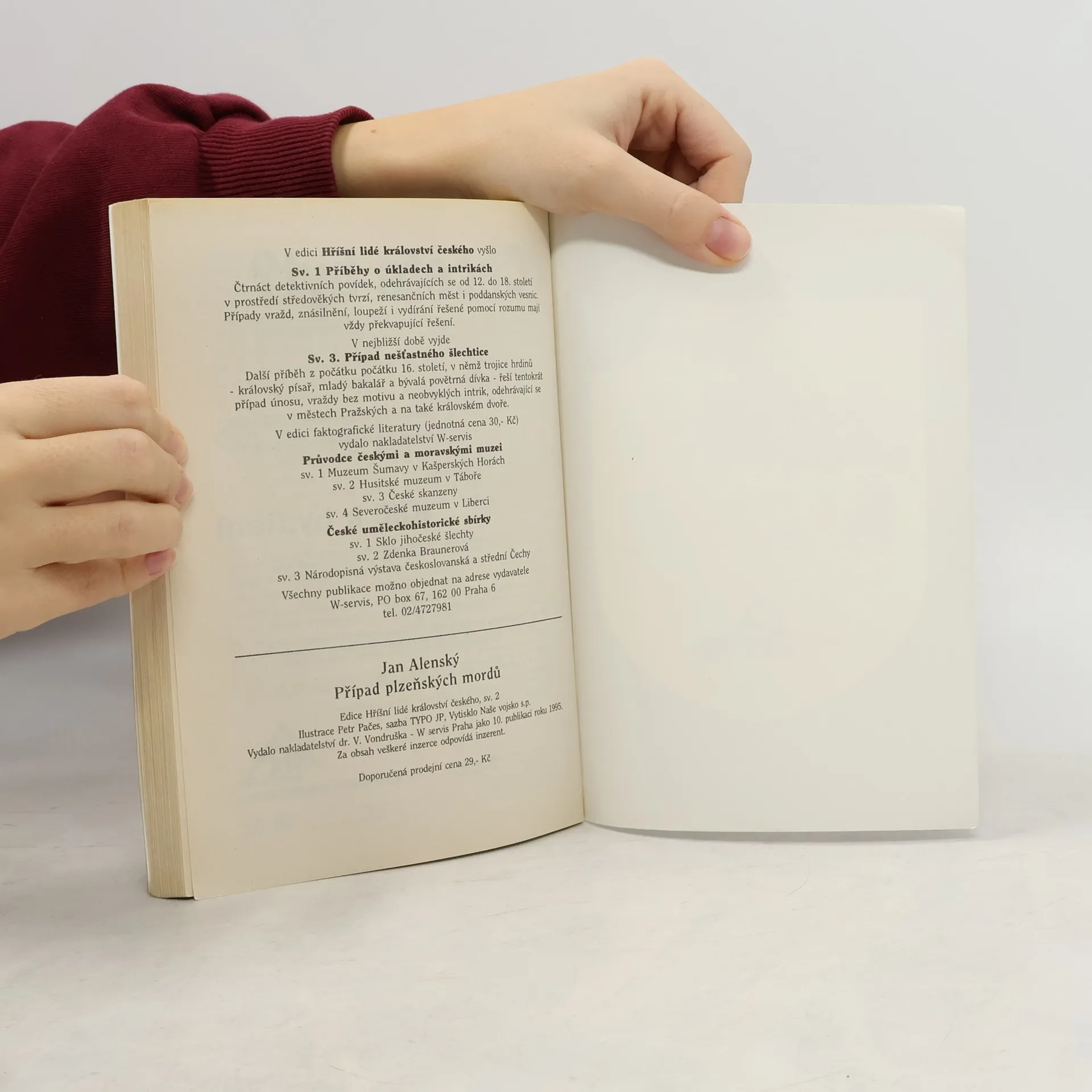 Edice Hříšní lidé Království českého přináší detektivní příběhy, odehrávající se v dávno minulých dobách. Protože ve středověku neexistovala ani policie, ani metody moderní kriminalistiky, je hledání pachatelů vždy založeno především na rozumu a někdy i na náhodě. Případplzeňských mordů je prvý z řady detektivních příběhů, odehrávajících se na počátku 16. století. Neobvyklá trojice detektivů- královský písař, mladý bakalář a bývalá povětrná dívka- řeší společně tajemné a neobvyklé zločiny. Tentokrát jde o sérii vražd a zpronevěru v královském městě Plzni.