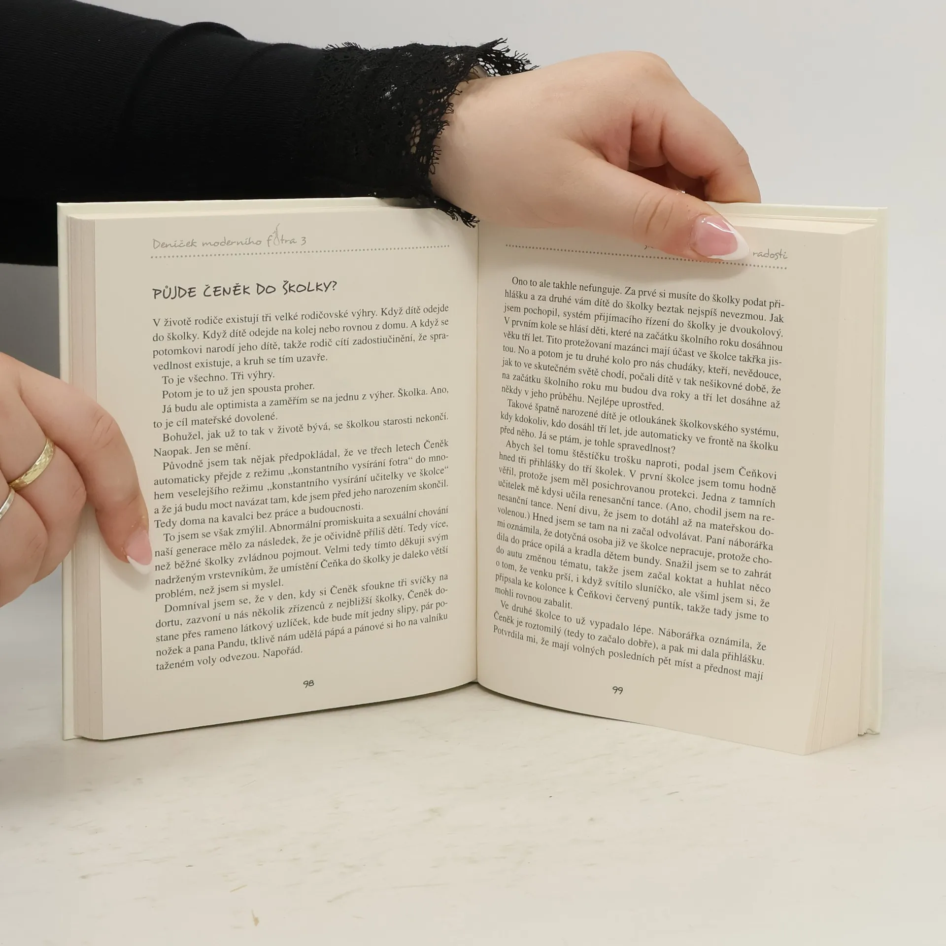 Třetí díl oblíbeného Deníčku moderního fotra je zároveň dílem posledním. Autor bezostyšně přiznává, že o svém synovi Čeňkovi napsal vše, co se dalo, a další dítě ani knihu by pravděpodobně nepřežil. Čeňkovi už jsou tři, plínky zkušeně zaměnil za nočník a svůj vyvinutý smysl pro vytváření domácího pekla dále zdokonaluje. Našemu fotrovi nastává údajně idylické období, kdy péči o hyperaktivní dítě převezme školka a další instituce. Nebyl by to ale Čeněk, aby každou novou situaci nepřetvořil v nový druh utrpení, a nebyl by to fotr, aby i tu nejšílenější situaci neuměl popsat s dokonale sarkastickým humorem.