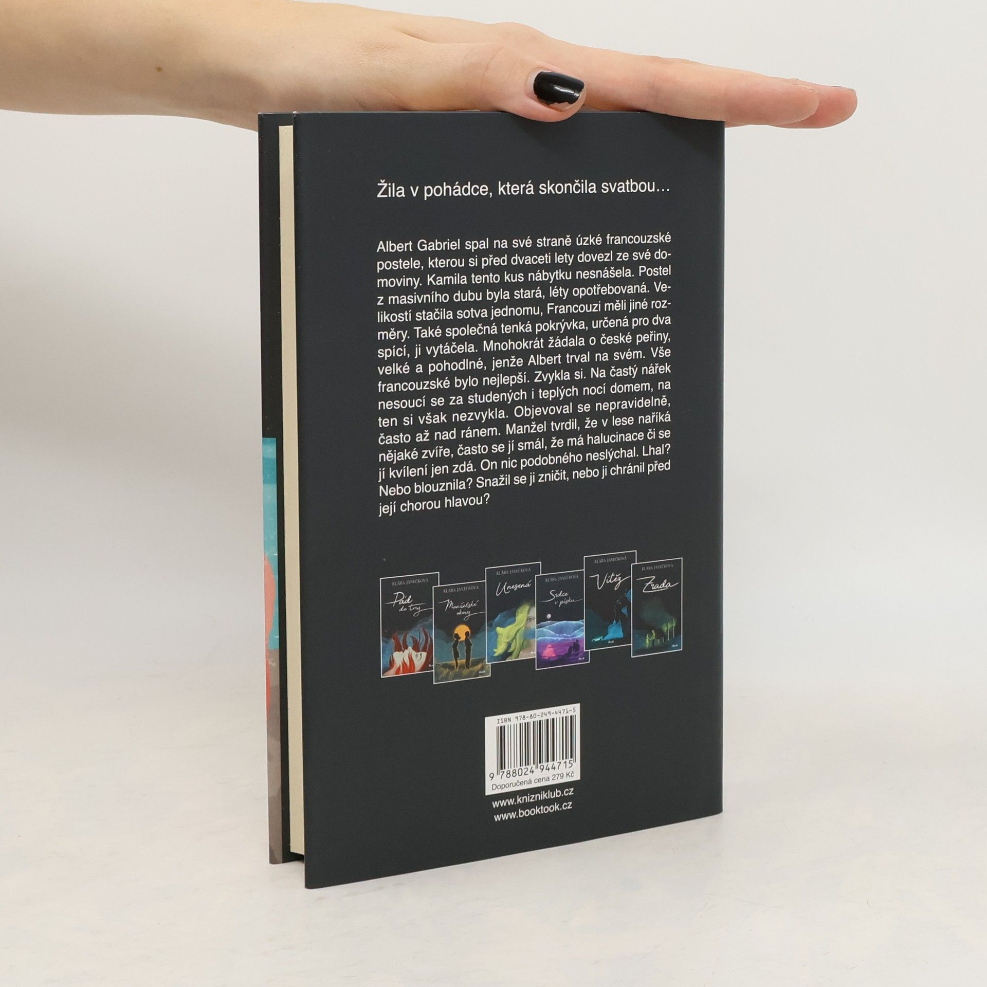Kamila Oliverová je známá autorka knih o záhadách a krásná žena. Albert Gabriel je synem přísného vojáka, který doma vládne tvrdou rukou. Albert Gabriel tak žije i přes mnohočetná nadání ve strachu a poslušnosti, což zanechá stopu na jeho osobnosti. Jako dospělý muž je bohatý a úspěšný, ale i nestálý; miluje a vzápětí nenávidí, navíc se často uchyluje k agresi. Svým chováním od sebe odežene obě manželky a zůstává sám ve srubu v lesích. Kamila se zrovna dostává z bolestivé ztráty partnera a utápí se v žalu i alkoholu a polyká prášky na uklidnění, když ji osloví mladá Běloruska pátrající po své kamarádce. Kamila, milovnice tajemna, souhlasí s tím, že jí pomůže. Její úkol však nebude lehký; musí se sblížit s podivínským starším Francouzem, získat si ho a zjistit, kam se poděla jeho předchozí žena, po níž jako by se slehla zem. Jenže když šarmantního Alberta Gabriela potká, její plány ztroskotají a ona se bezhlavě zamiluje. Začíná pohádka, která ale dost možná skončí svatbou. Jak jejich vztah postupuje, Albert Gabriel začíná být hrubý a žárlivý, navíc se kolem domu začnou dít podivné věci. Měla Běloruska pravdu? Mohl se Albert Gabriel přece jen své poslední ženy zbavit? Je něco v jejím vztahu skutečně špatně, nebo ji šálí mysl omámená léky? A co by se stalo, kdyby se pokusila od manžela utéct stejně jako jeho předchozí ženy?