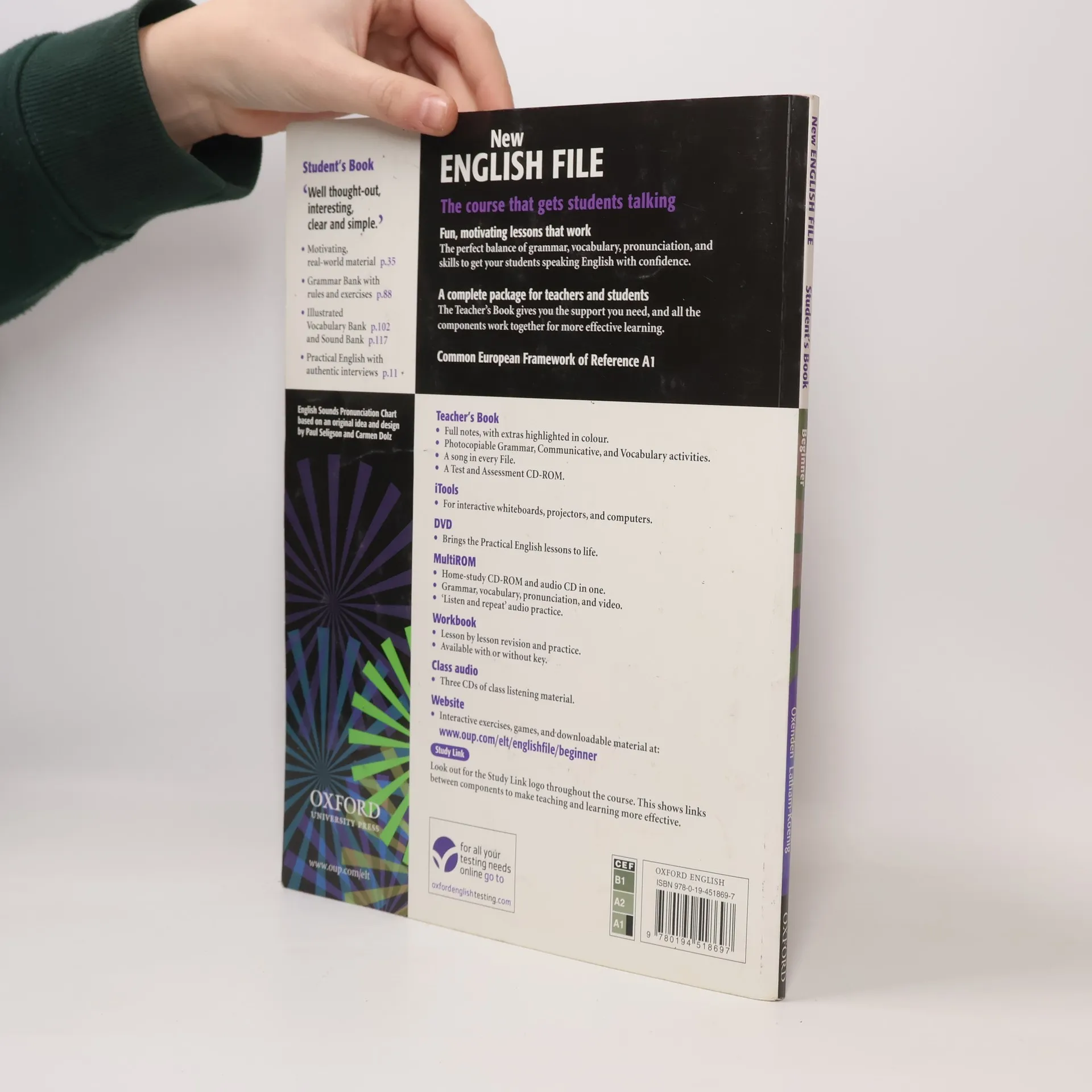 Shorter syllabus for beginners - 7 units 'Words and phrases to learn' in every lesson Authentic 'People in the street' interviews Consolidation and review pages after each unit 'Can you...?' game Communication section and Listening scripts Grammar Bank, Vocabulary Bank, and Sounds Bank
