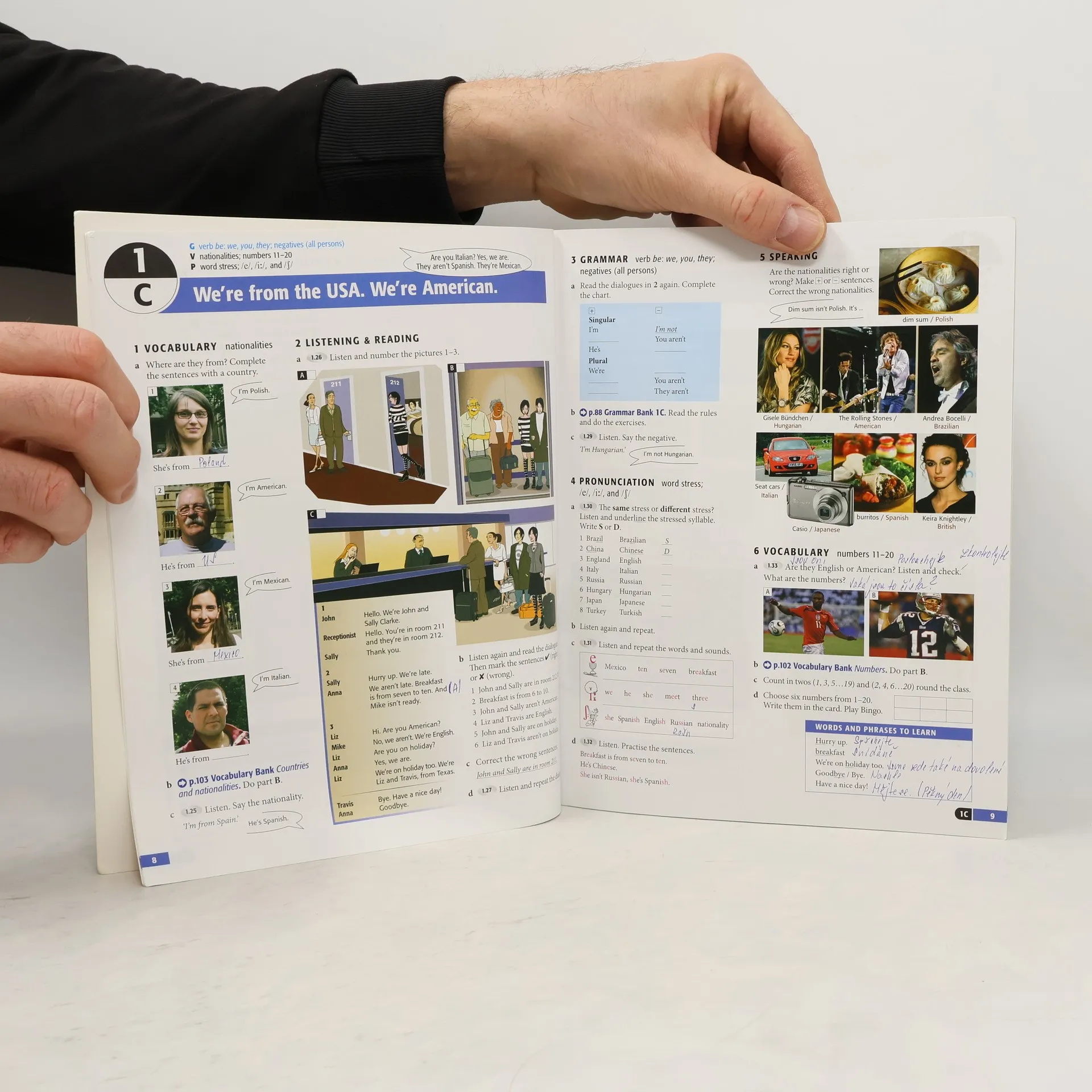 Shorter syllabus for beginners - 7 units 'Words and phrases to learn' in every lesson Authentic 'People in the street' interviews Consolidation and review pages after each unit 'Can you...?' game Communication section and Listening scripts Grammar Bank, Vocabulary Bank, and Sounds Bank