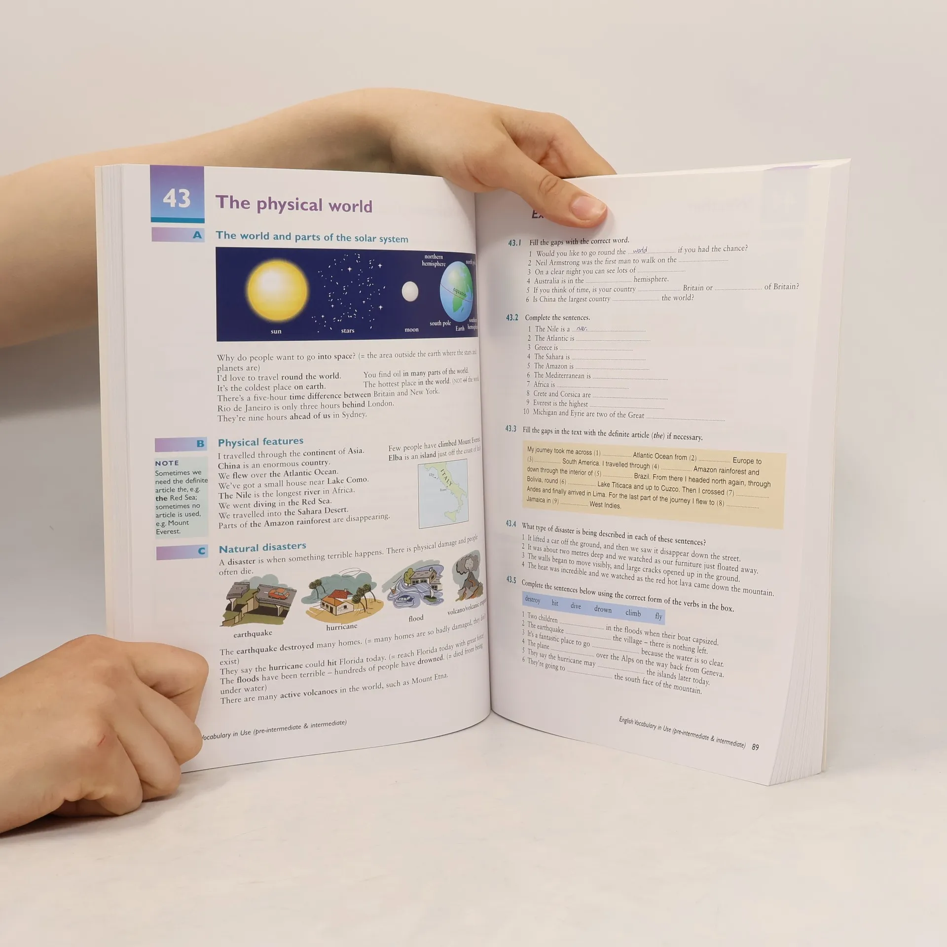 Vocabulary items are presented and explained on left-hand pages with a variety of follow-up activities on right-hand pages.