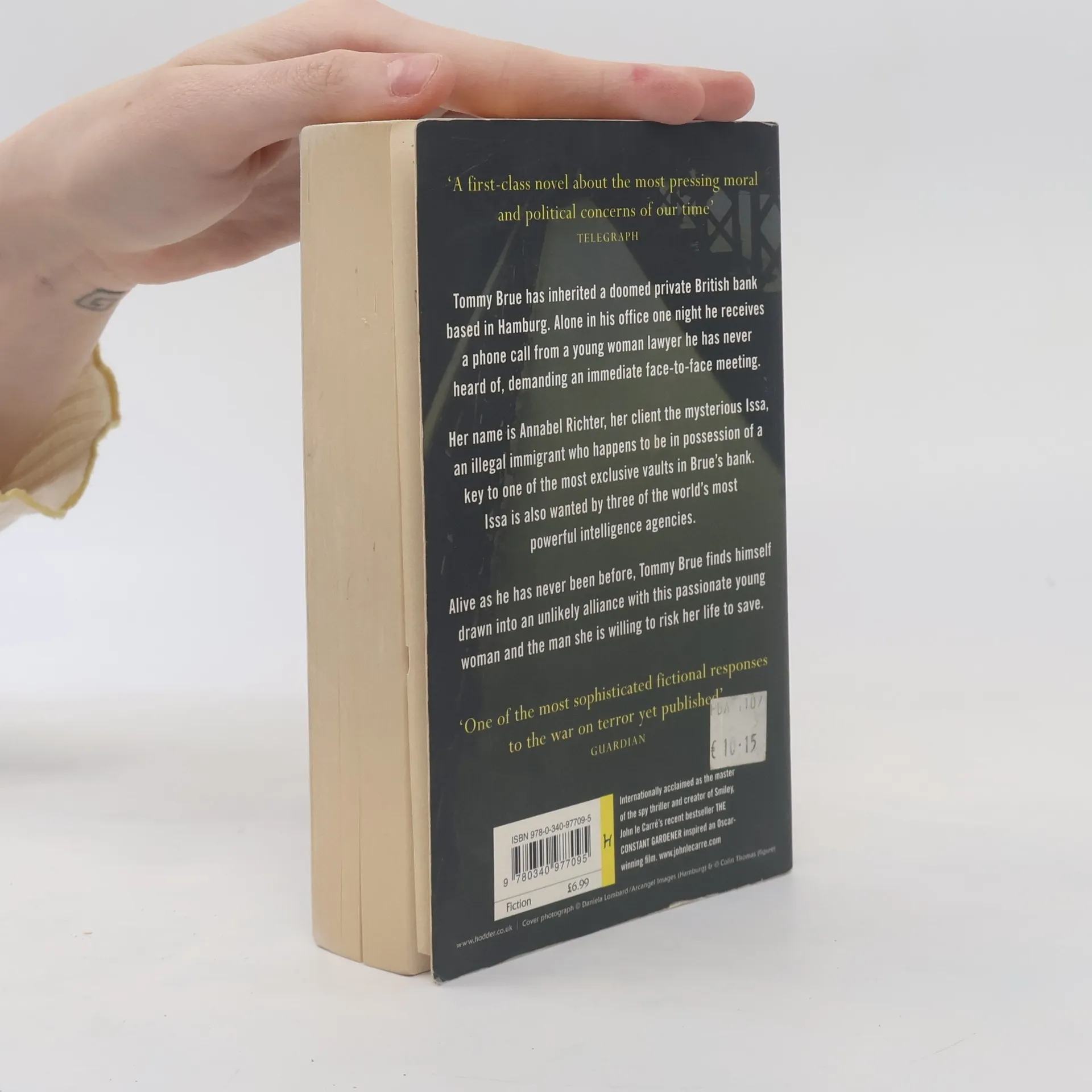 A half-starved young Russian man in a long black overcoat is smuggled into Hamburg at dead of night. He has an improbable amount of cash secreted in a purse round his neck. He is a devout Muslim. Or is he? He says his name is Issa. Annabel, an idealistic young German civil rights lawyer, determines to save Issa from deportation. Soon her client's survival becomes more important to her than her own career. In pursuit of Issa's mysterious past, she confronts the incongruous Tommy Brue, the sixty-year-old scion of Brue Frères, a failing British bank based in Hamburg. A triangle of impossible loves is born. Meanwhile, scenting a sure kill in the so-called War on Terror, the spies of three nations converge upon the innocents.