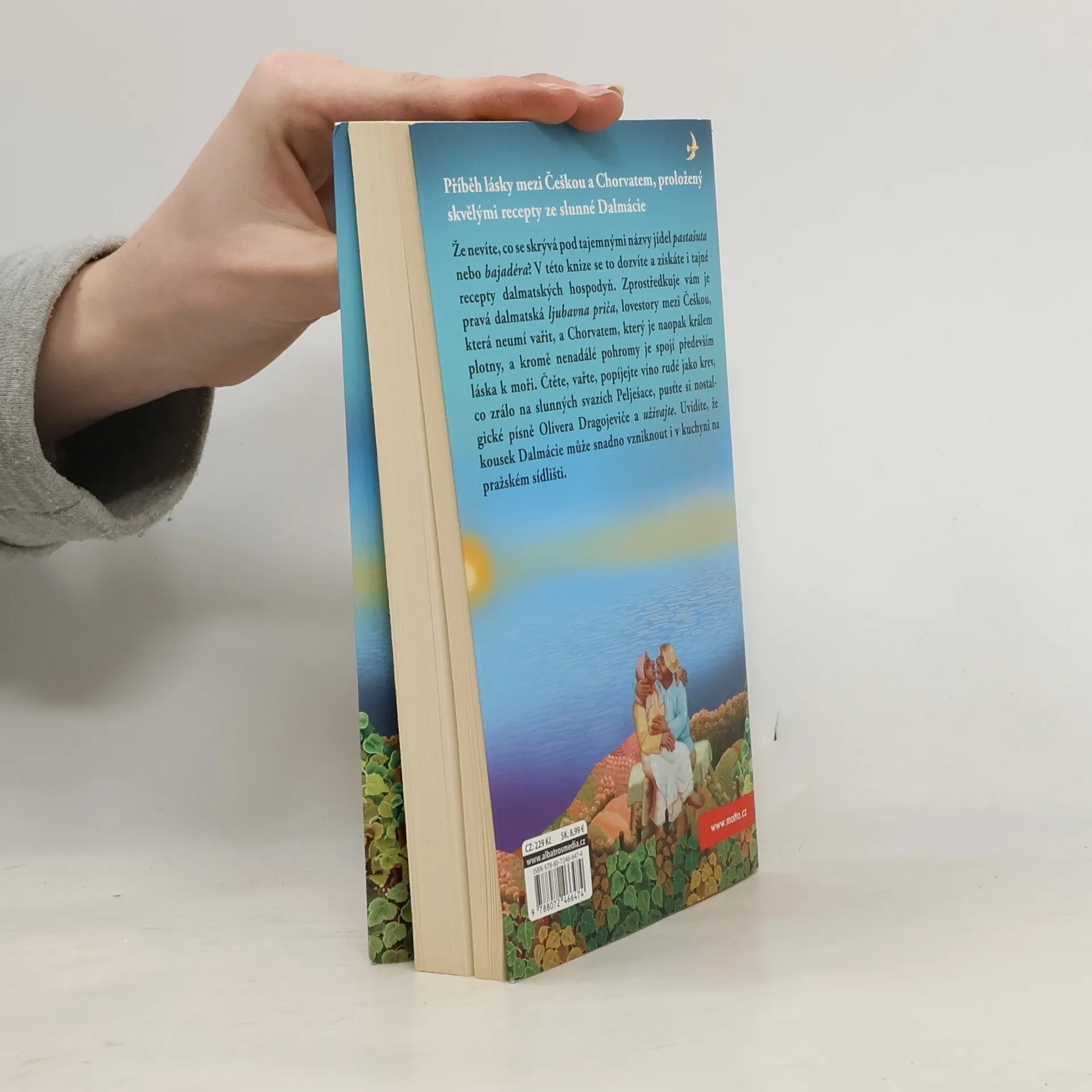 Že nevíte, co se skrývá pod tajemnými názvy jídel pastašuta nebo bajadéra? V této knize se to dozvíte a získáte i tajné recepty dalmatských hospodyň. Zprostředkuje vám je pravá dalmatská ljubavna priča, lovestory mezi Češkou, která neumí vařit, a Chorvatem, který je naopak králem plotny, a kromě nenadálé pohromy je spojí především láska k moři. Čtěte, vařte, popíjejte víno rudé jako krev, co zrálo na slunných svazích Pelješace, pusťte si nostalgické písně Olivera Dragojeviče a uživajte.