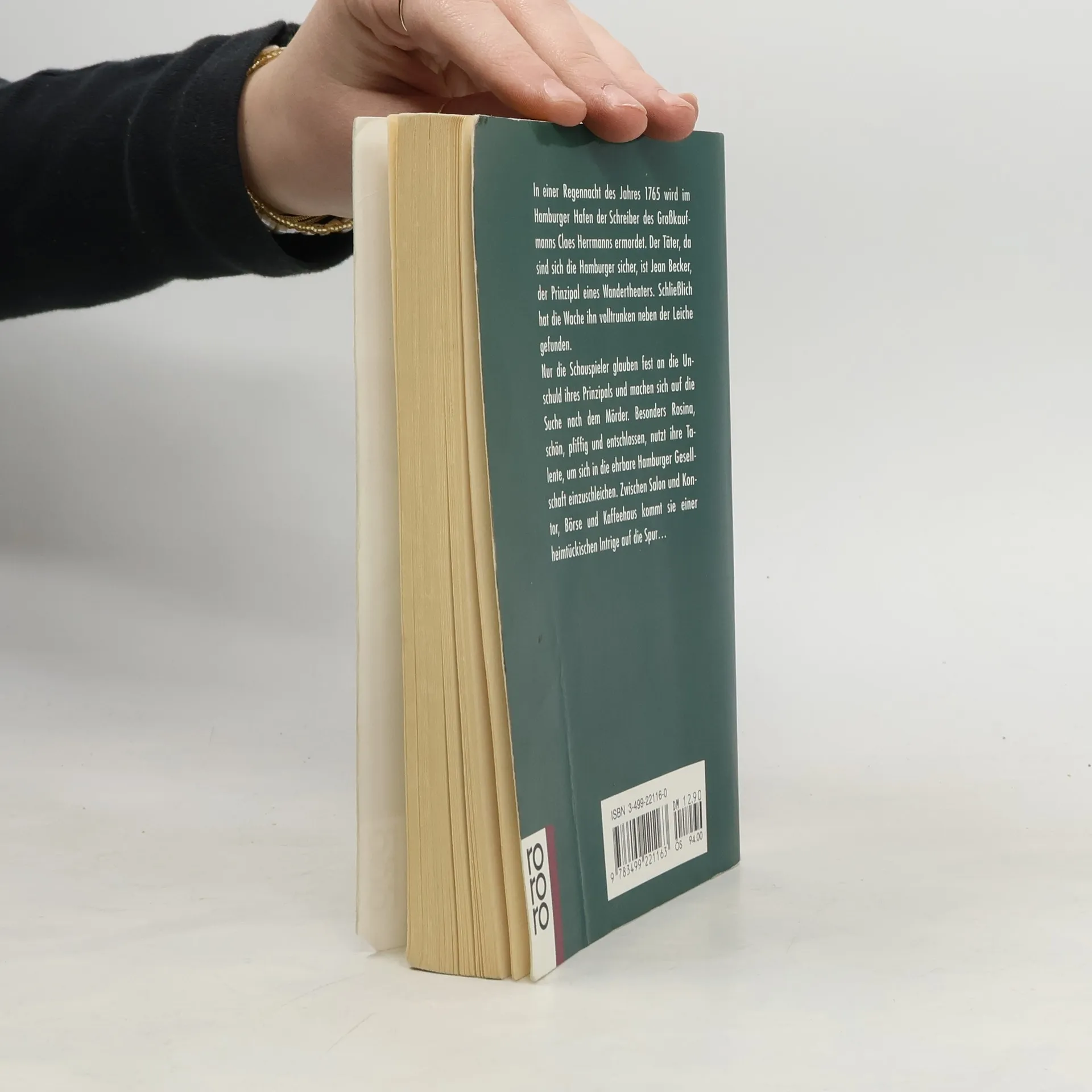 In einer Regennacht des Jahres 1765 wird im Hamburger Hafen der Schreiber des Großkaufmanns Claes Herrmanns ermordet. Der Täter, da sind sich die Hamburger sicher, ist Jean Becker, der Prinzipal eines Wandertheaters. Schließlich hat die Wache ihn volltrunken neben der Leiche gefunden. Nur die Schauspieler glauben fest an die Unschuld ihres Prinzipals und machen sich auf die Suche nach dem Mörder. Besonders Rosina, schön, pfiffig und entschlossen, nutzt ihre Talente, um sich in die ehrbare Hamburger Gesellschaft einzuschleichen. Zwischen Salon und Kontor, Börse und Kaffeehaus kommt sie einer heimtückischen Intrige auf die Spur ... Rosinas erster Fall