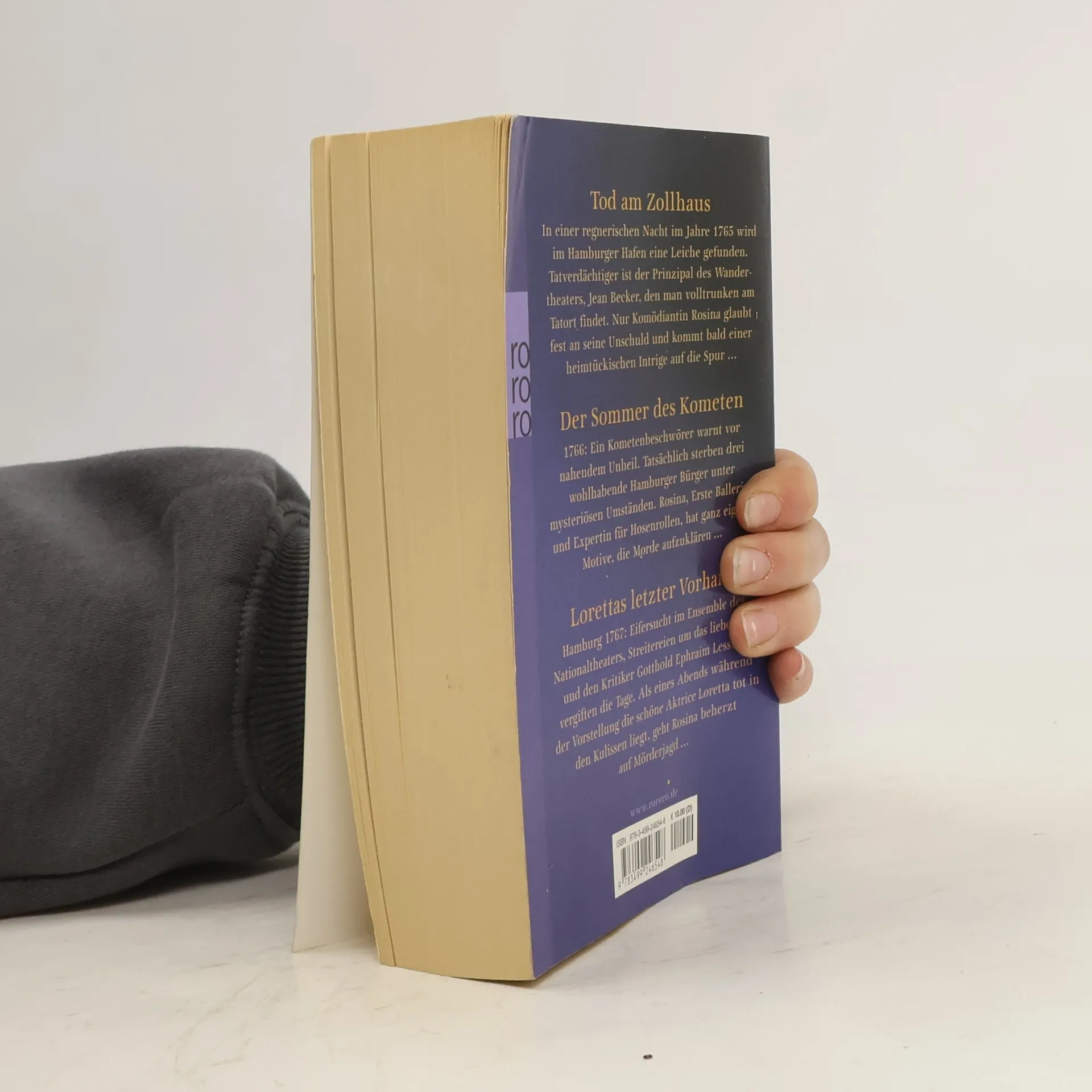 Tod am Zollhaus In einer regnerischen Nacht im Jahre 1765 wird im Hamburger Hafen eine Leiche gefunden. Tatverdächtiger ist der Prinzipal des Wandertheaters, Jean Becker, den man volltrunken am Tatort findet. Nur Komödiantin Rosina glaubt fest an seine Unschuld und kommt bald einer heimtückischen Intrige auf die Spur … Der Sommer des Kometen 1766: Ein Kometenbeschwörer warnt vor nahendem Unheil. Tatsächlich sterben drei wohlhabende Hamburger Bürger unter mysteriösen Umständen. Rosina, erste Ballerina und Expertin für Hosenrollen, hat ganz eigene Motive, die Morde aufzuklären … Lorettas letzter Vorhang Hamburg 1767: Eifersucht im Ensemble des Nationaltheaters, Streitereien um das liebe Geld und den Kritiker Gotthold Ephraim Lessing vergiften die Tage. Als eines Abends während der Vorstellung die schöne Actrice Loretta tot in den Kulissen liegt, geht Rosina beherzt auf Mörderjagd …