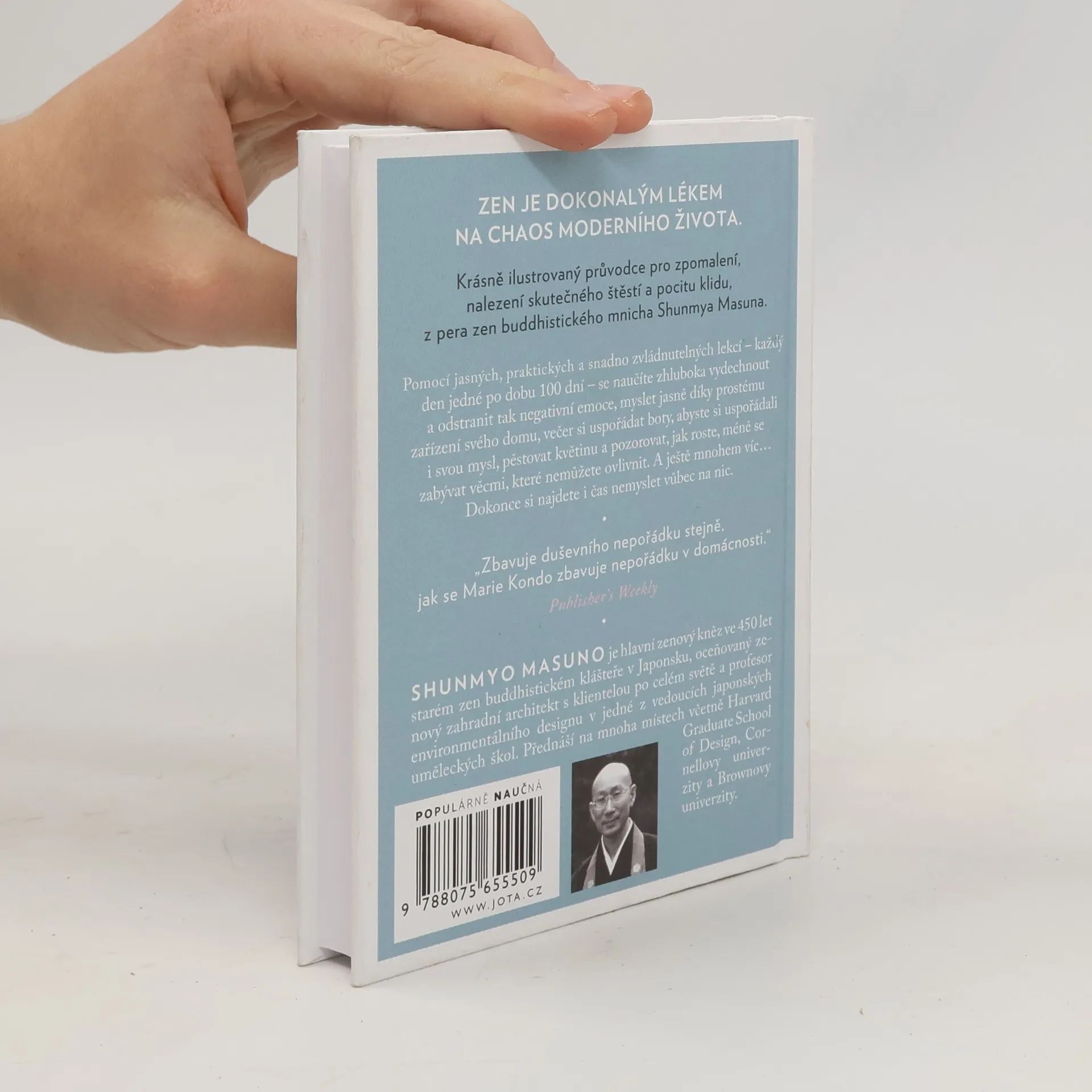 Renomovaný buddhistický mnich Shunmyo Masuno čerpá ze sto let staré moudrosti, aby vám ukázal, jak do moderního života vnést podstatu zen buddhismu. Pomocí jasných, praktických a snadno zvládnutelných lekcí – každý den jedné po dobu 100 dní – se naučíte zhluboka vydechnout a odstranit tak negativní emoce; myslet jasně díky prostému zařízení svého domu; večer si uspořádat boty, abyste si uspořádali i svou mysl; pěstovat květinu a pozorovat, jak roste; méně se zabývat věcmi, které nemůžete ovlivnit; a ještě mnohem víc… Dokonce si najdete i čas nemyslet vůbec na nic.