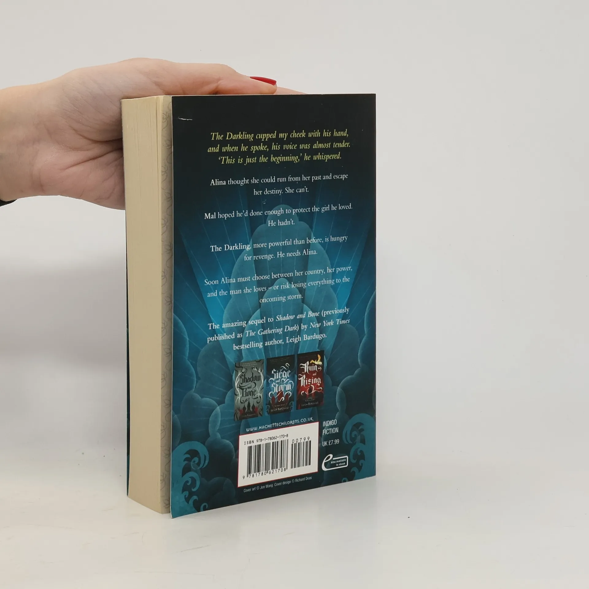 Alina and Mal are on the run - but they can't run for ever...The Darkling has emerged from the Shadow Fold with a terrifying new power and he needs Alina to realise his dangerous plan. Somehow, she must choose between her country, her power, and her love - or risk losing everything to the oncoming storm. Glorious. Epic. Irresistible. Romance.