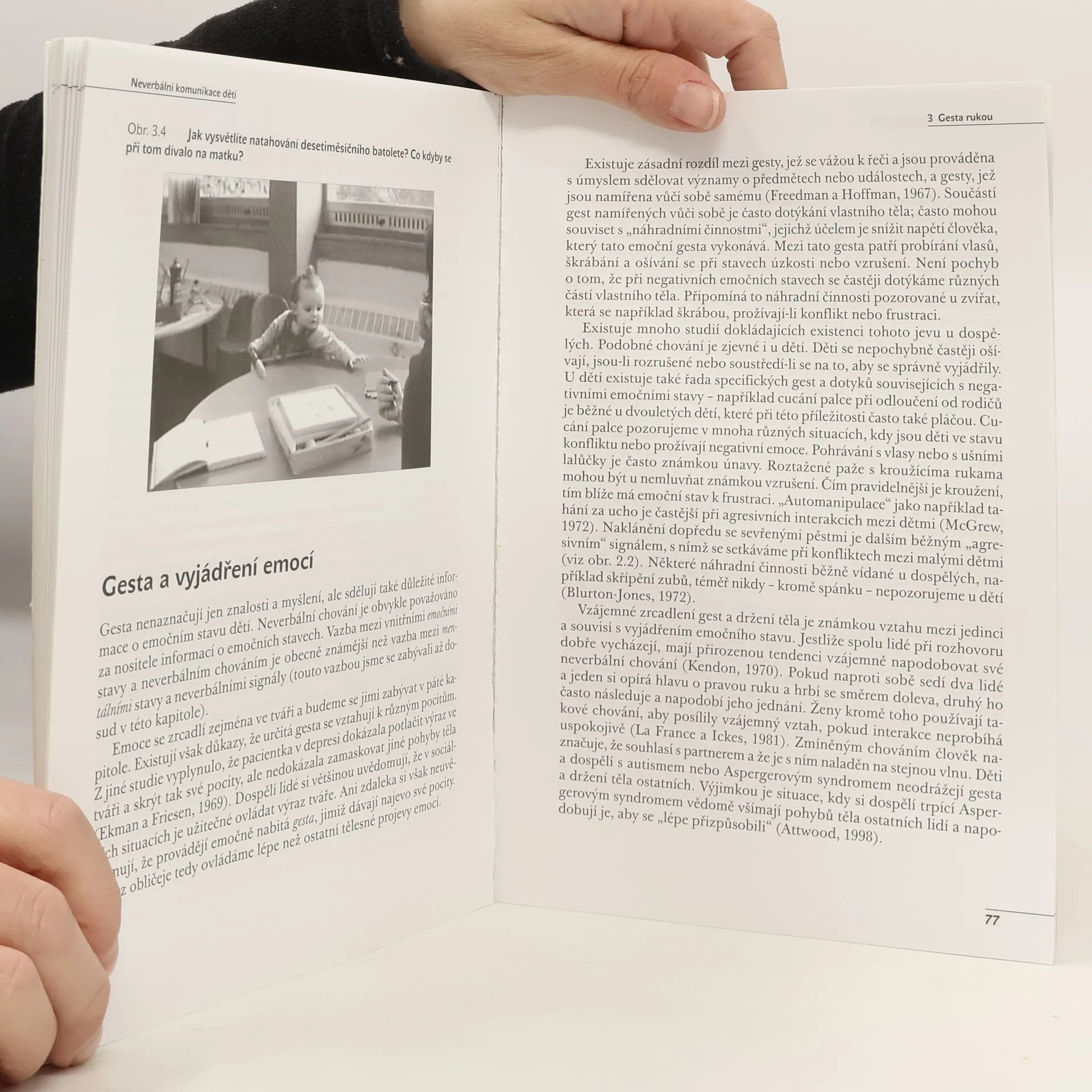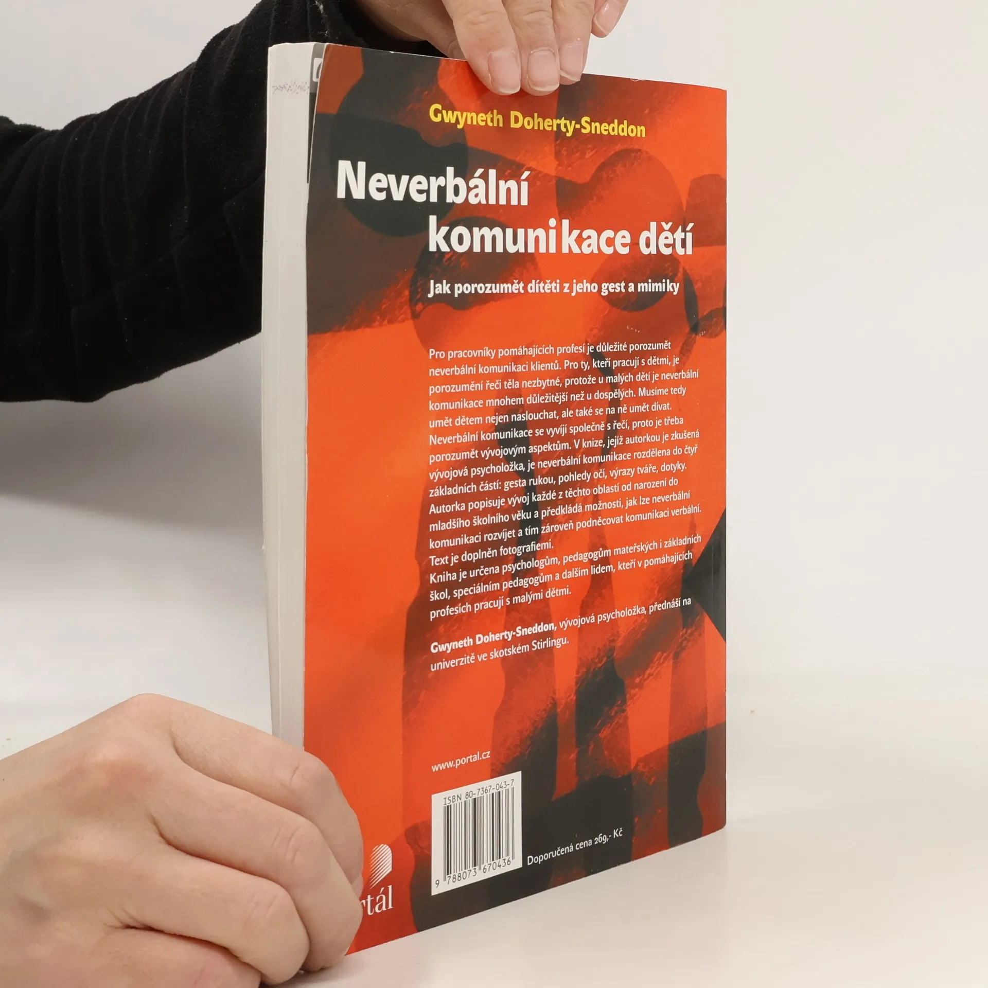 Pro pracovníky pomáhajících profesí je důležité porozumět neverbální komunikaci klientů. Pro ty, kteří pracují s dětmi, je porozumění řeči těla nezbytné, protože u malých dětí je neverbální komunikace mnohem důležitější než u dospělých. Musíme tedy umět dětem nejen naslouchat, ale také se na ně umět dívat. Neverbální komunikace se vyvíjí společně s řečí, proto je třeba porozumět vývojovým aspektům. V knize, jejíž autorkou je zkušená vývojová psycholožka, je neverbální komunikace rozdělena do čtyř základních částí: gesta rukou, pohledy očí, výrazy tváře, dotyky. Autorka popisuje vývoj každé z těchto oblastí od narození do mladšího školního věku a předkládá možnosti, jak lze neverbální komunikaci rozvíjet a tím zároveň podněcovat komunikaci verbální. Text je doplněn fotografiemi. Kniha je určena psychologům, pedagogům mateřských i základních škol, speciálním pedagogům a dalším lidem, kteří v pomáhajících profesích pracují s malými dětmi.