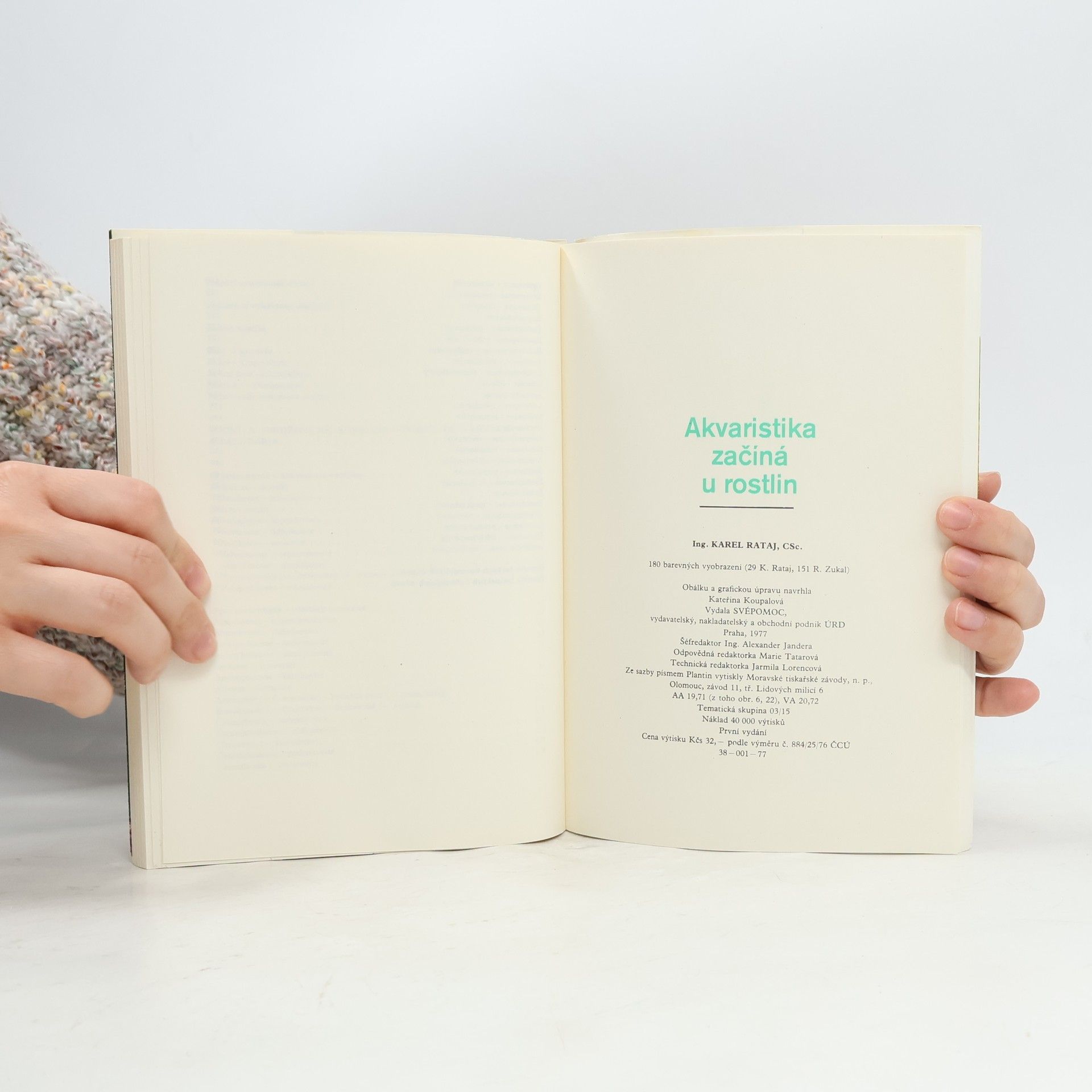 Akvárium je součást bytové dekorace. Uklidňuje nejen zurčení potůčku nebo šumění deště, uklidňuje i pohled na tiché, dobře osvětlené akvárium a na ryby, které se zdánlivě bez nejmenší námahy pohybují. Publikace je doprovázena značným počtem barevných fotografií rostlin Rudolfa Zukala a některými snímky z autorovy cesty do povodí Amazonky a Ria Negra. Výběr snímků byl veden snahou ukázat nejatraktivnější rostliny, především však rostliny nové a méně známé. Čtenáře jistě potěší překrásné a mnohdy velmi vzácné květy kryptokoryn a jiných druhů akvarijních rostlin. Kapitoly: Akvaristika začíná u rostlin, Výživa akvarijních rostlin, Tropické dny a noci, Existují stínomilné rostliny ?, Také rostliny mají své problémy, Rozmnožování akvarijních rostlin, Úprava pokojových akvárií, Vodní a obojživelné rostliny v přírode a v akváriu, Charakteristika hlavních tropických oblastí, Teplota a vyhřívání akvária, Jména rostlin, Řasy v akváriu, Vodní a obojživelné rostliny vhodné pro akvária a paludária-Cryptogamae-nekvetoucí rostliny, Spermatophyta-rostliny semenné, Rejstřík českých botanických názvů, Rejstřík latinských botanických názvů. V příloze 180 barevných vyobrazení. První vydání. Cena knihy v čase vydání: 32.- Kčs.