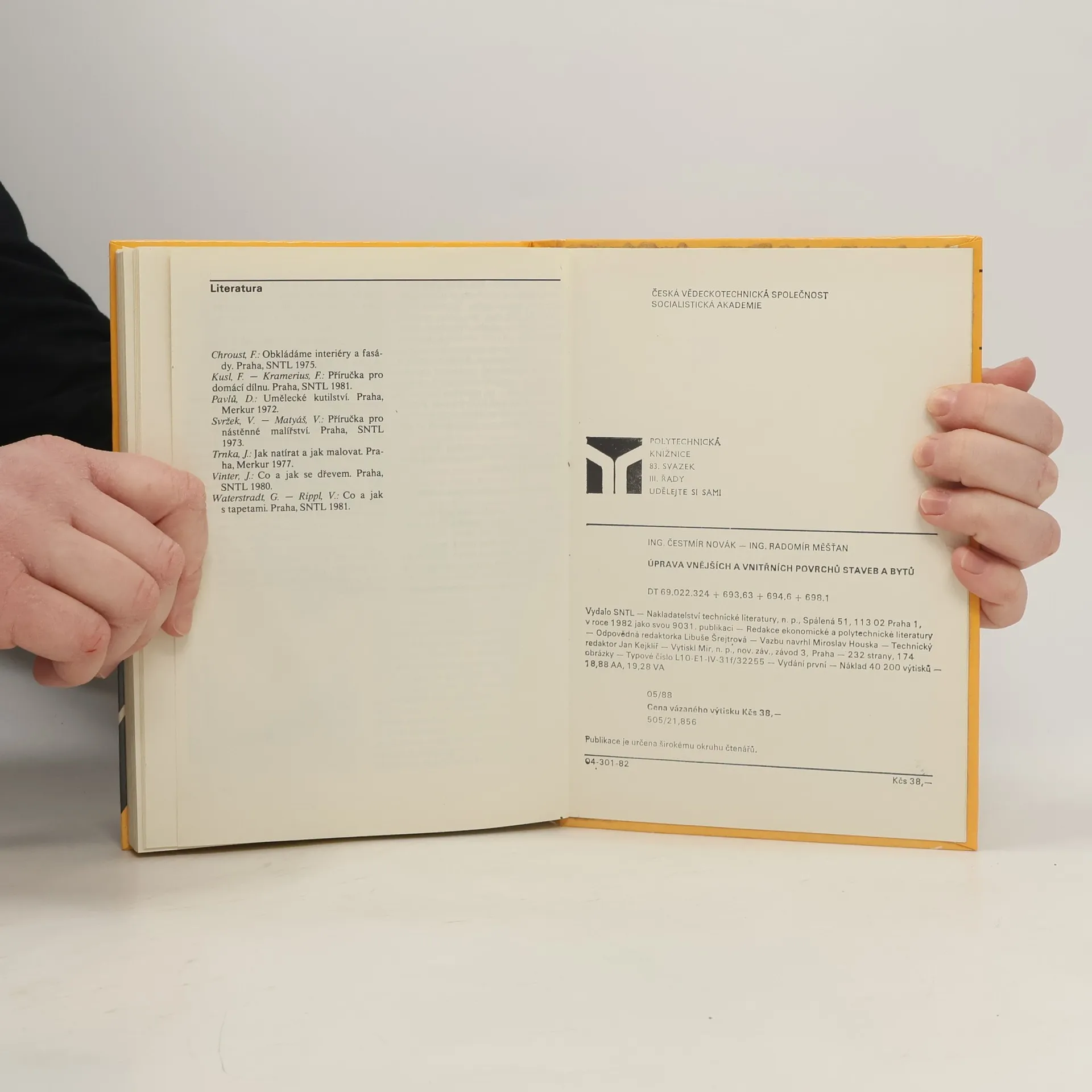 Obsah knihy na 232 stranách je převážně zaměřen na význam povrchových úprav, na obklady vnějších a vnitřních povrchů, na úpravy nátěrovými hmotami na podkladech všeho druhu, na malování, na tapety a tapetování a na speciální práce na různých podkladech. Kniha obsahuje desítky názorných nákresů. Je určena širokému okruhu čtenářů. 232 stran, 174 obrázků. Vydání první.