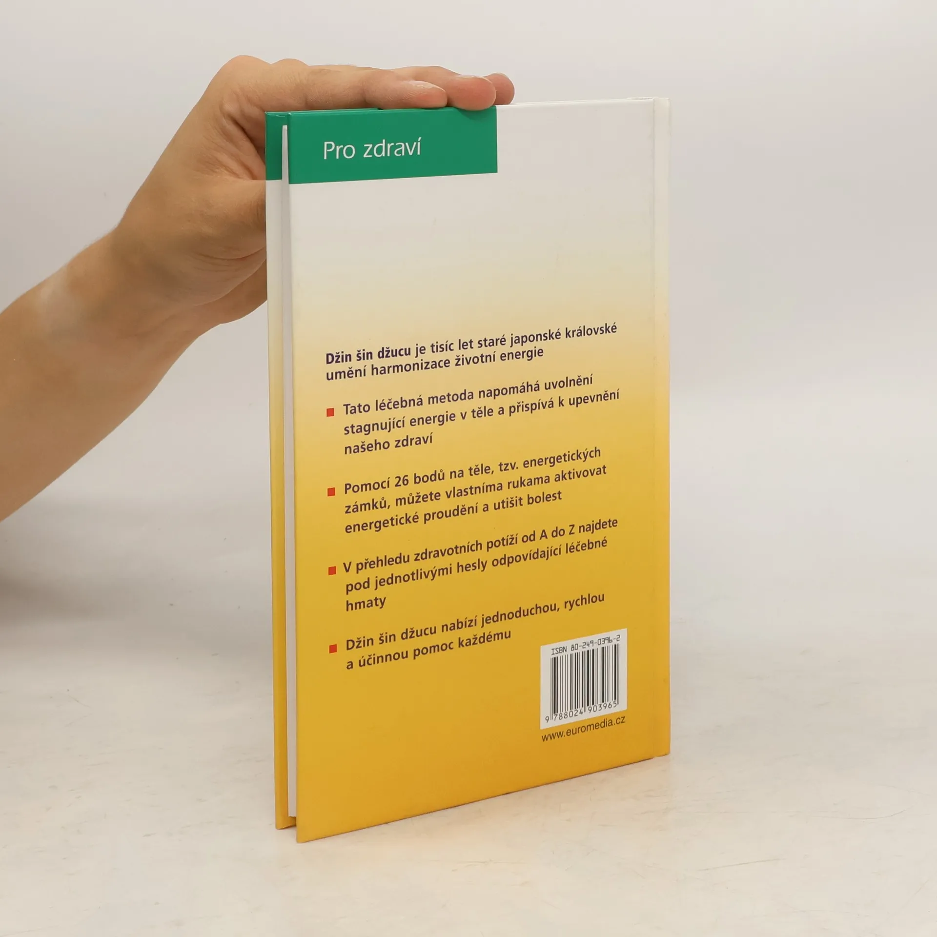 Džin šin džucu je prastaré japonské umění harmonizace životní energie a uvolňování energetických blokád v lidském organismu pomocí rukou. Jednoduchá, rychlá a účinná samoléčebná metoda, při níž se používá držení prstů a krátké hmaty, dokáže utišit bolest.