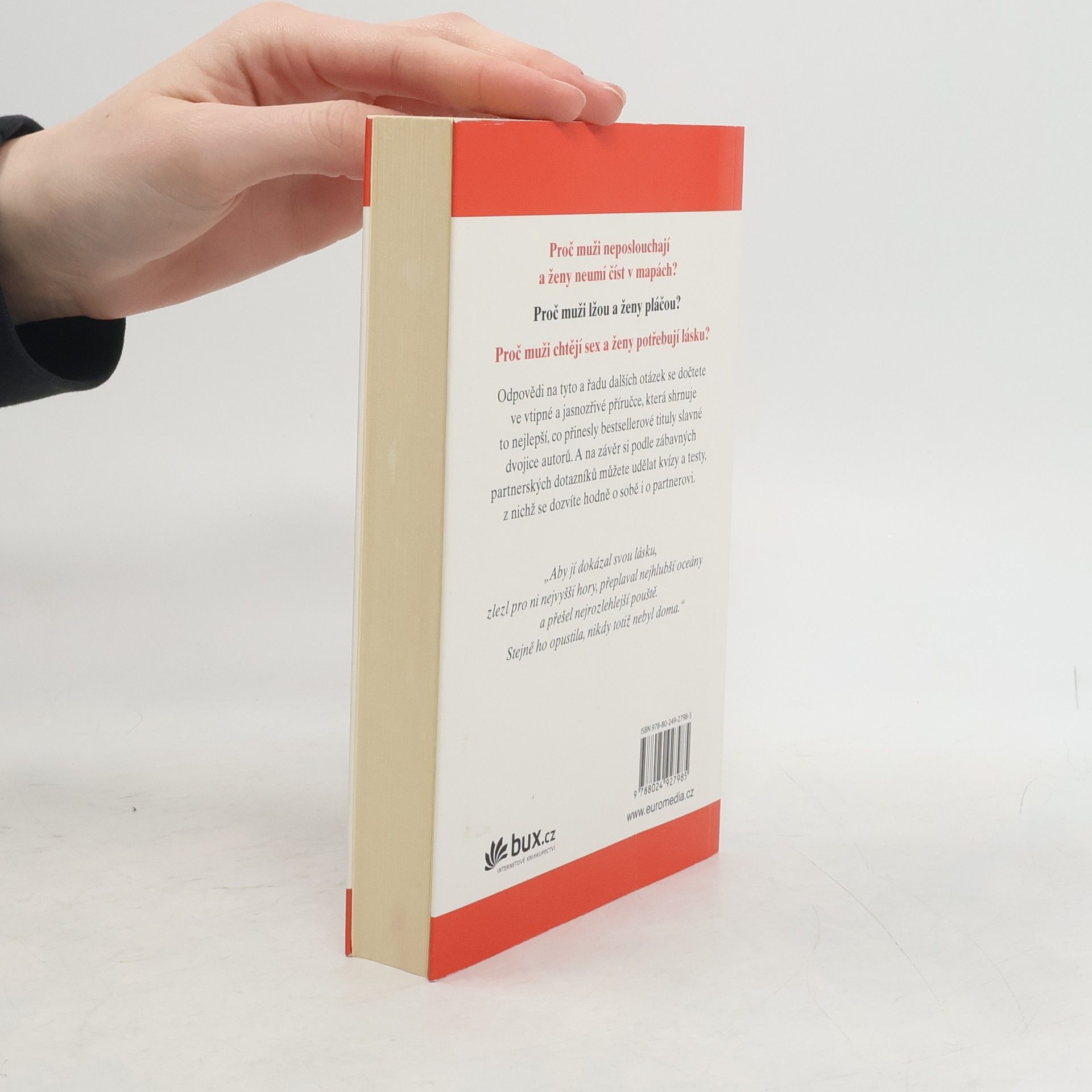 Kompendium z bestsellerových titulů Proč muži neposlouchají a ženy neumí číst v mapách, Proč muži lžou a ženy pláčou, Proč muži chtějí sex a ženy potřebují lásku a Muži! Ženy! shrnuje to nejlepší, co za dlouhá léta bádání populární dvojice autorů vytvořila. Zabývají se základní otázkou, která je aktuální od počátků lidstva: muži a ženy jsou odlišné bytosti, ani horší, ani lepší – jsou prostě jiní. A tato kniha nabízí poznatky, které vám pomohou se orientovat v labyrintu partnerských vztahů, vyhnout se slepým uličkám a nástrahám a zbavit se špatných návyků. A to vše s vtipným a laskavým nadhledem.