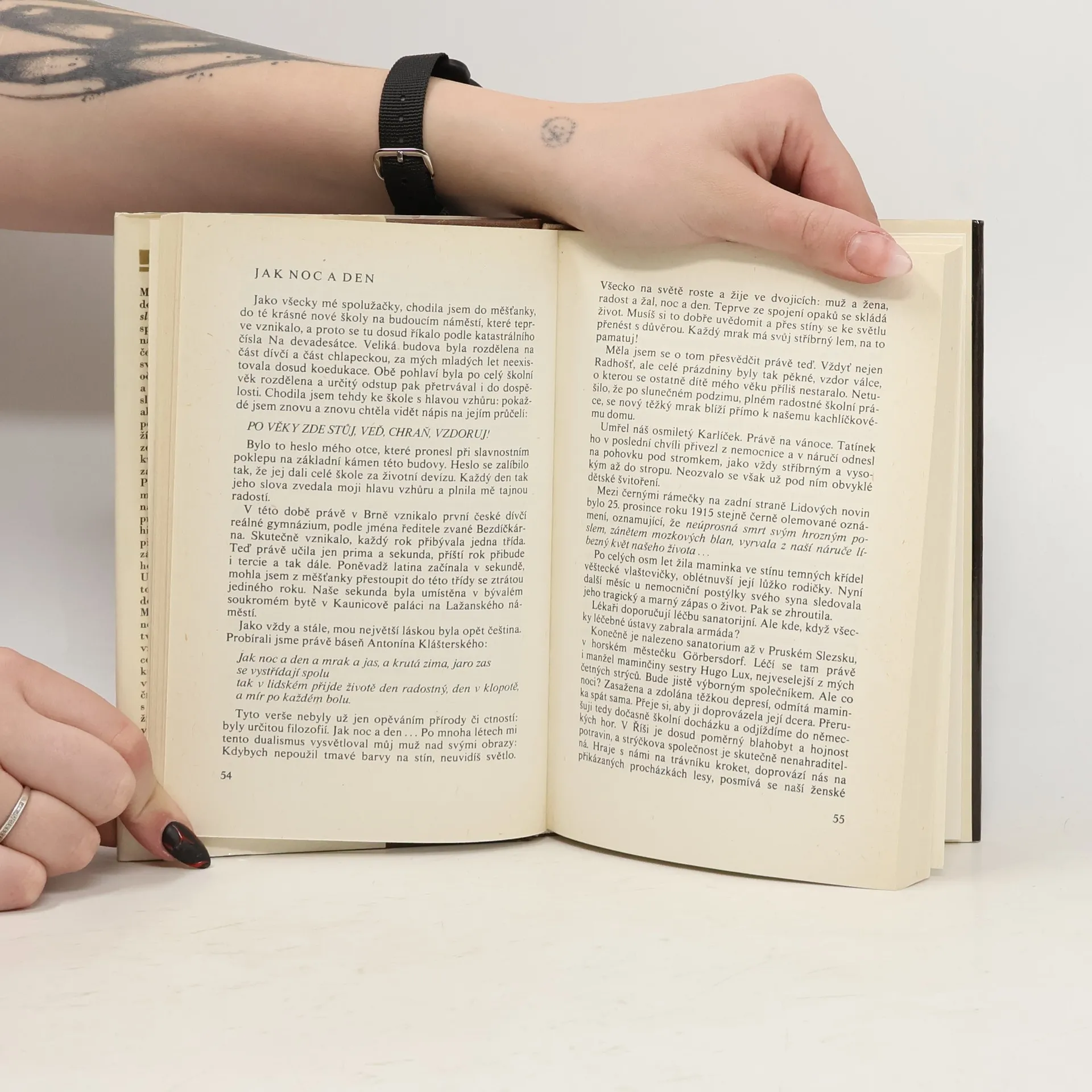 Memoárová knížka známé spisovatelky je vyznáním láskyplného vztahu k domovu, k přírodě i k blízkým lidem. V druhé části vzpomíná na společnost pražskou, setkání s předními představiteli a na své manželství.