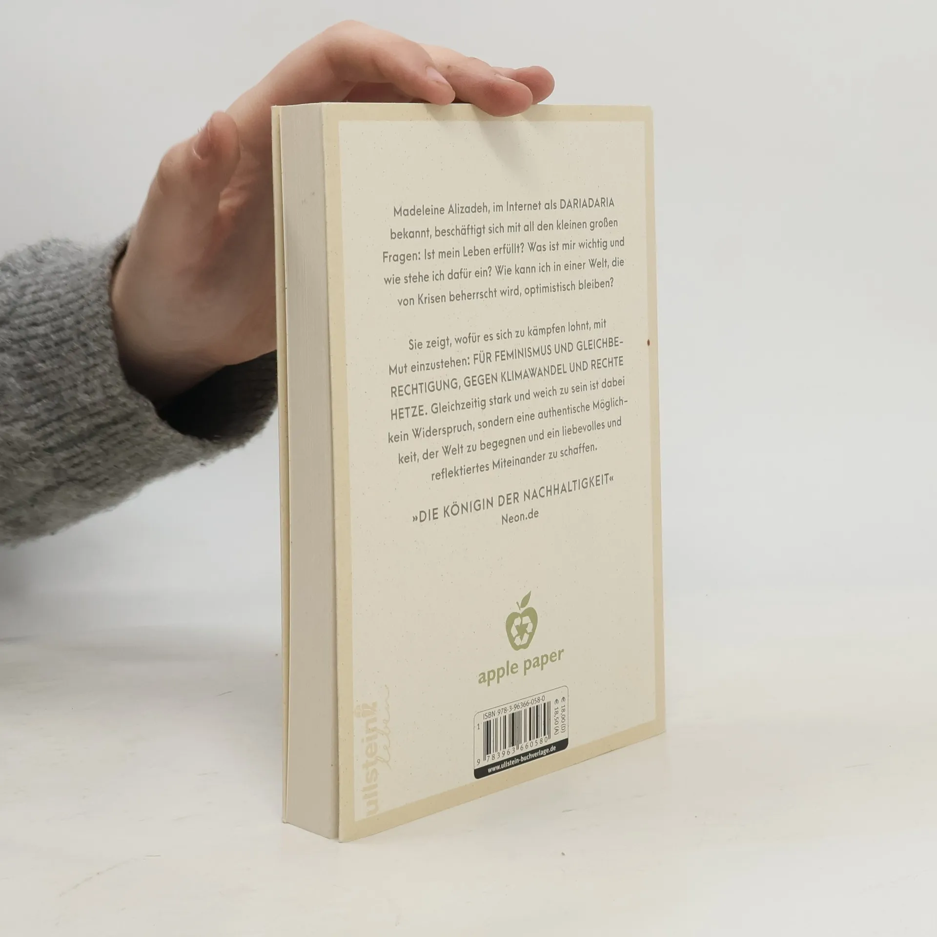 Madeleine Alizadeh, im Internet als dariadaria bekannt, beschäftigt sich mit all den kleinen großen Fragen: Ist mein Leben erfüllt? Was ist mir wichtig und wie stehe ich dafür ein? Wie kann ich in einer Welt, die von Krisen beherrscht wird, optimistisch bleiben? Sie gibt ihren Leserinnen einen gut gefüllten Werkzeugkoffer mit auf den Weg, der ihnen hilft, sich ihrem inneren Zuhause mit ganz viel Liebe zu widmen und für all das, wofür es sich zu kämpfen lohnt, mit Mut einzustehen: für Feminismus und Gleichberechtigung, gegen Klimawandel und rechte Hetze. Gleichzeitig stark und weich zu sein ist dabei kein Widerspruch, sondern eine authentische Möglichkeit, der Welt zu begegnen und ein liebevolles und reflektiertes Miteinander zu schaffen. Ein inspirierendes Buch von einer beeindruckenden jungen Frau!