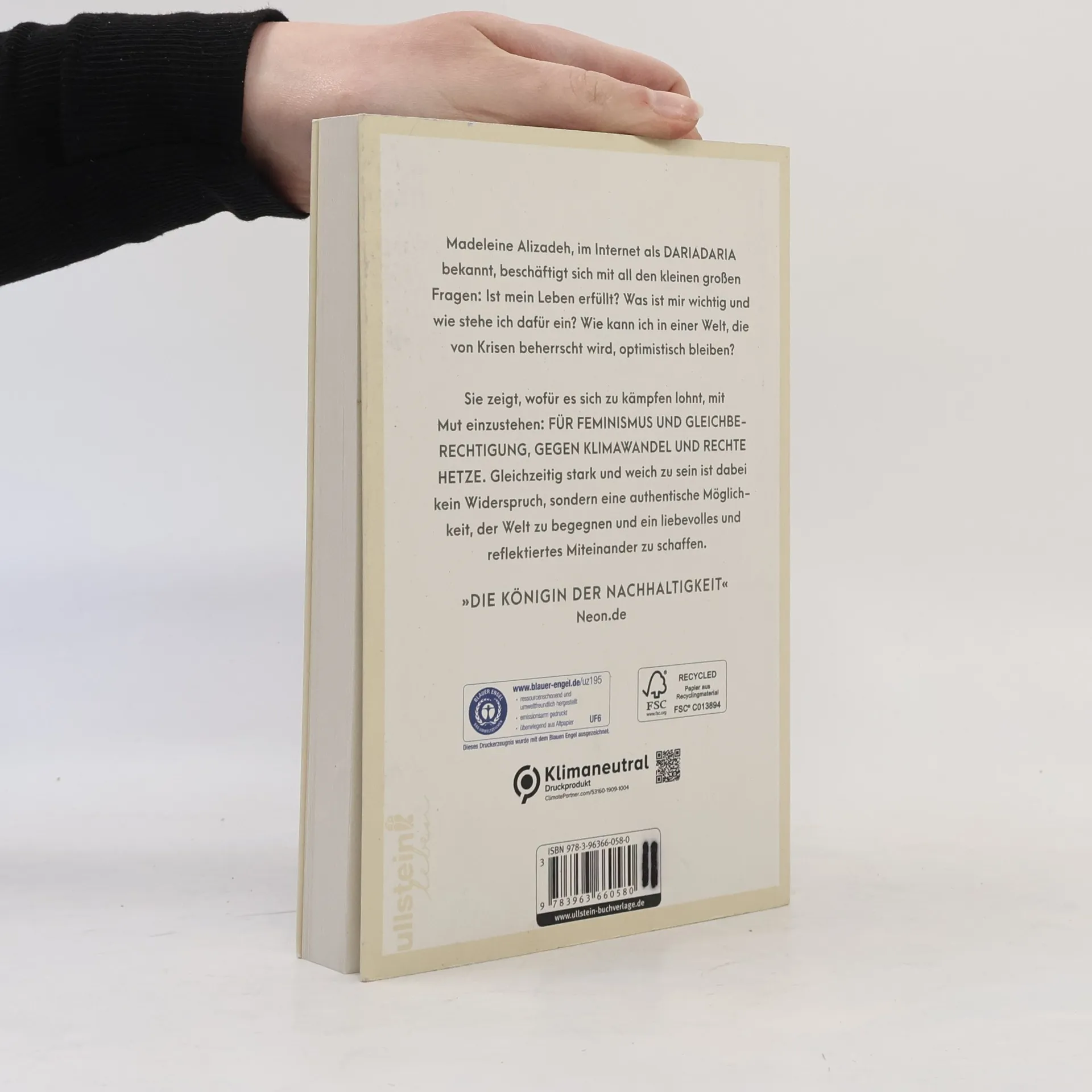 Madeleine Alizadeh, im Internet als dariadaria bekannt, beschäftigt sich mit all den kleinen großen Fragen: Ist mein Leben erfüllt? Was ist mir wichtig und wie stehe ich dafür ein? Wie kann ich in einer Welt, die von Krisen beherrscht wird, optimistisch bleiben? Sie gibt ihren Leserinnen einen gut gefüllten Werkzeugkoffer mit auf den Weg, der ihnen hilft, sich ihrem inneren Zuhause mit ganz viel Liebe zu widmen und für all das, wofür es sich zu kämpfen lohnt, mit Mut einzustehen: für Feminismus und Gleichberechtigung, gegen Klimawandel und rechte Hetze. Gleichzeitig stark und weich zu sein ist dabei kein Widerspruch, sondern eine authentische Möglichkeit, der Welt zu begegnen und ein liebevolles und reflektiertes Miteinander zu schaffen. Ein inspirierendes Buch von einer beeindruckenden jungen Frau!