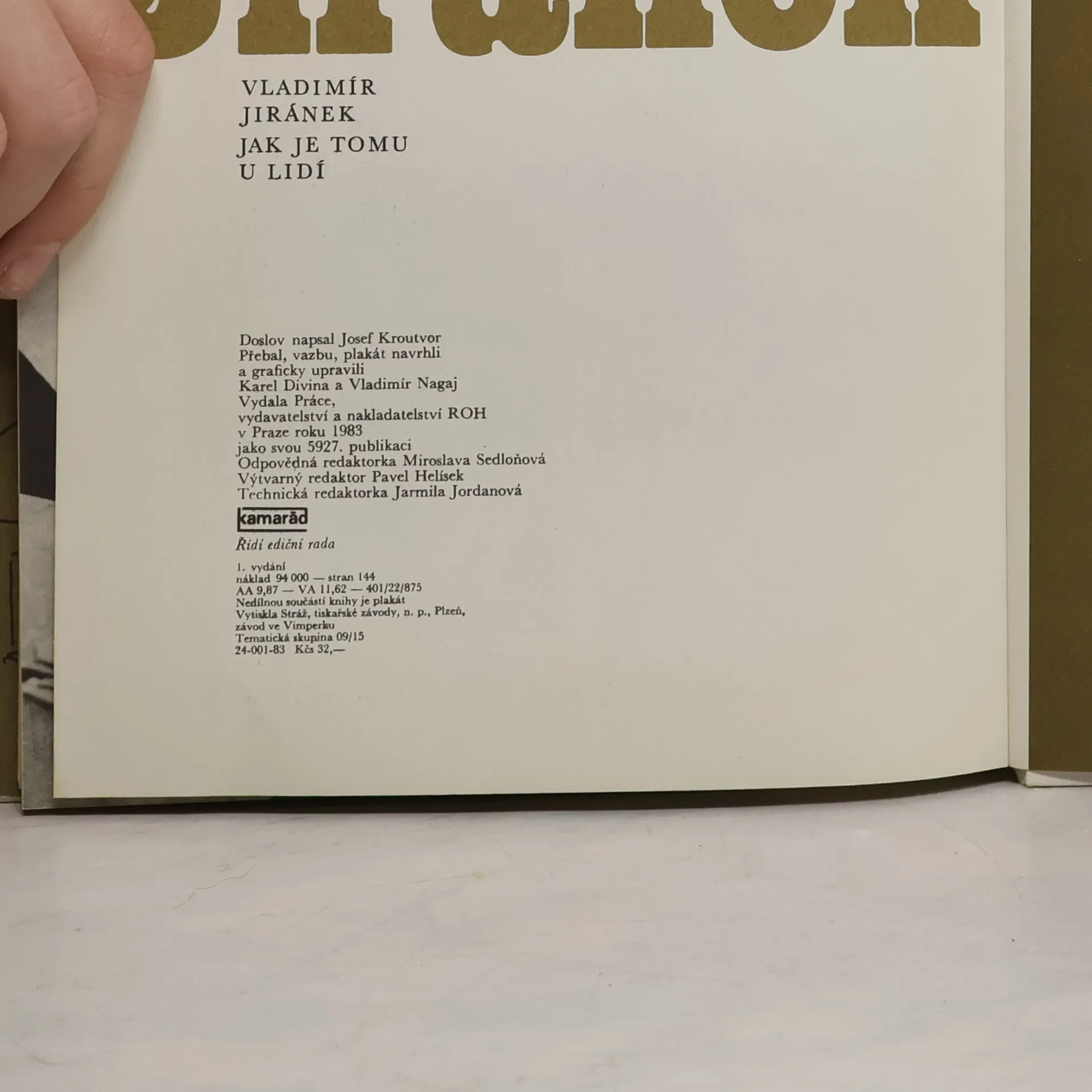 Knížka kresleného humoru Vladimíra Jiránka (nar.1938) s doslovem J. Kroutvora.