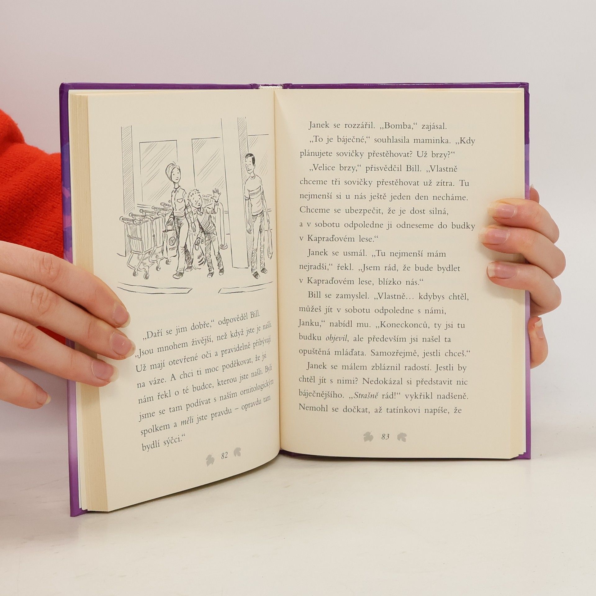 Příběh se šťastným koncem, který se skutečně stal! Při bourání staré stodoly přišly o střechu nad hlavou čtyři malé sovičky. Když je Janek najde, jsou hladové a prochladlé. Po jejich rodičích není ani vidu, ani slechu. Chlapcova maminka proto zavolá do záchranné stanice, kde jim poradí, jak se o ně mají postarat, než si pro ně přijedou. Ptáčátka jsou z nejhoršího venku, ale podaří se pro ně najít náhradní rodinu? Nebude to snadné. Janek se ale rozhodne, že záchranářům v hledání pomůže… Krásný příběh o lidech s dobrým srdcem, kteří pomáhají zachraňovat zvířátka.
