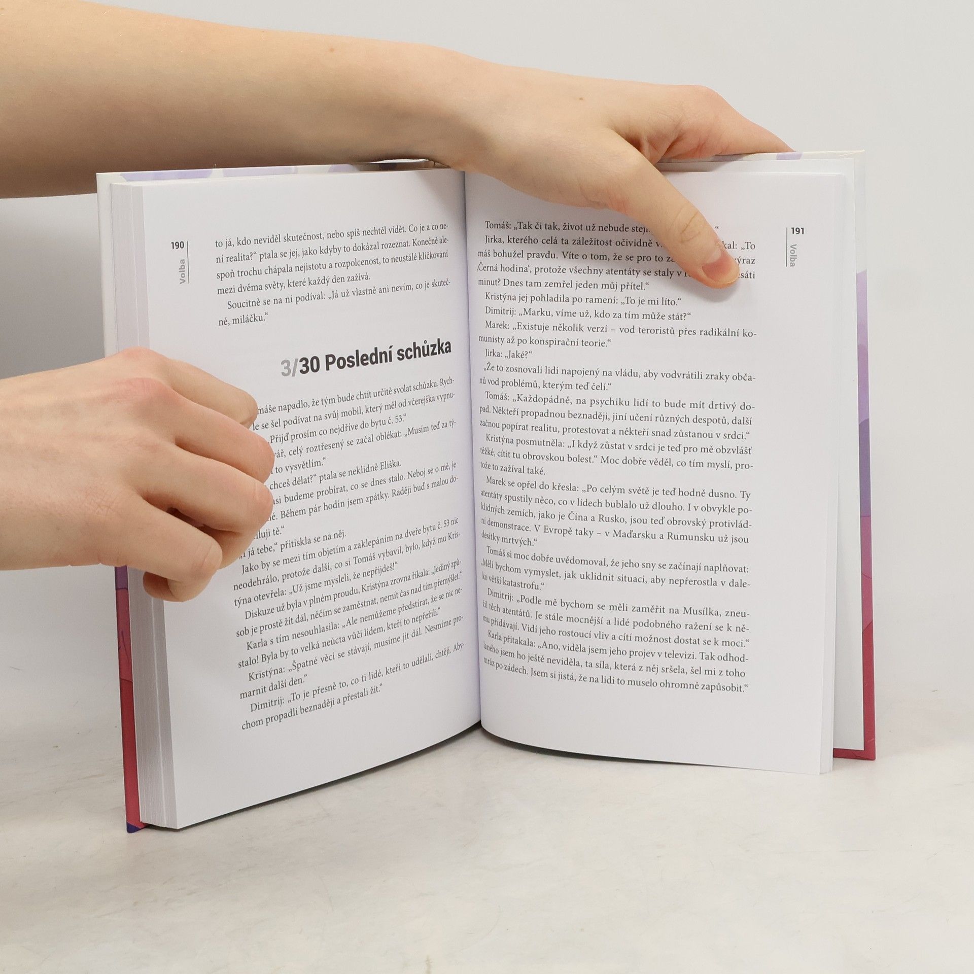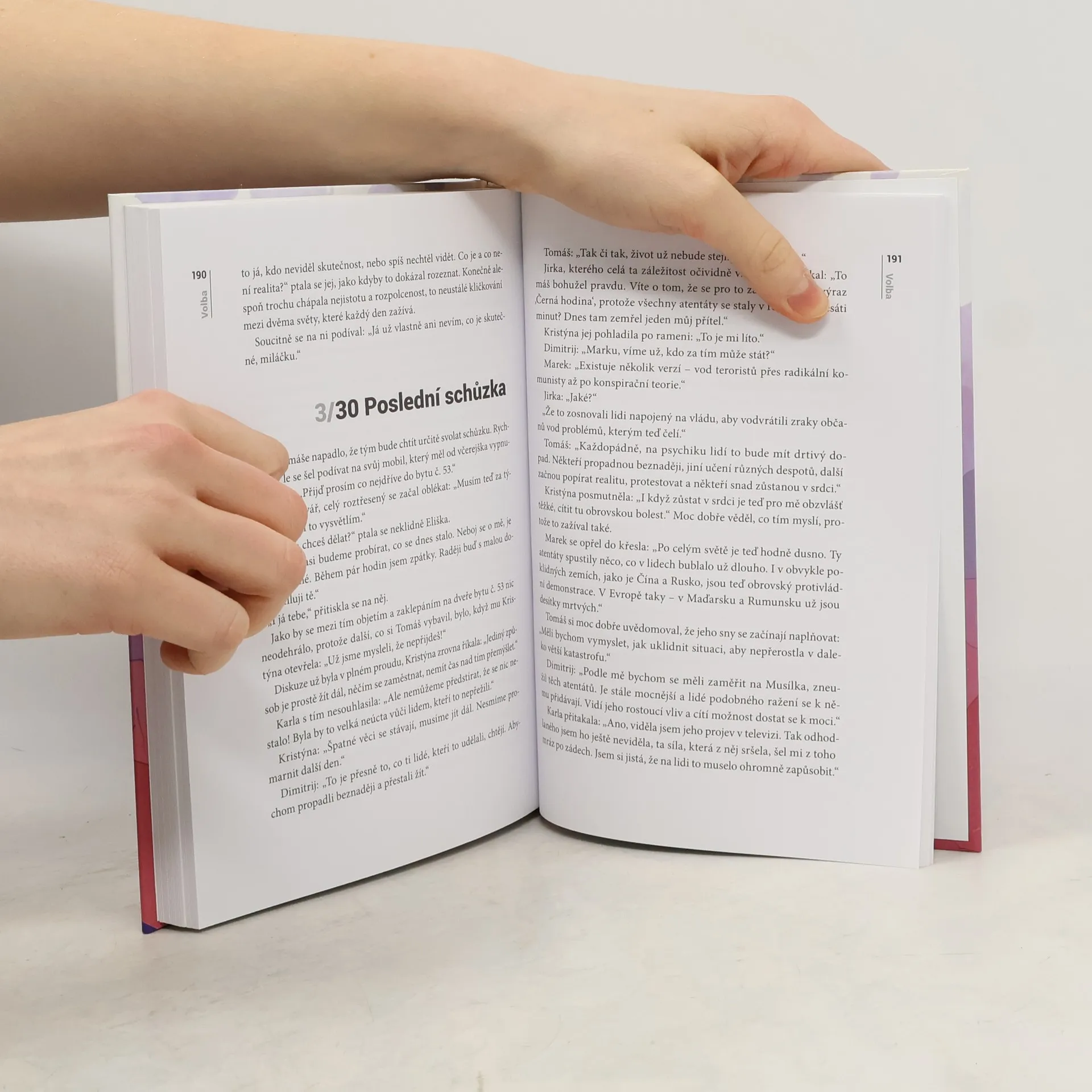 "Zdá se mi o světě v plamenech. O jaderných bombách, které dopadají jedna za druhou a polykají města jako rakovina. O našem dožívání v podzemním krytu, kde se z nás pomalu stávají zvířata. Ty sny jsou tak živé. Bojím se, že se jednou budu chtít probudit a zjistím, že je pozdě.“ Tomáš je mladý muž v nejlepších letech. Ačkoliv se zdá, že mu nic neschází, upadá do stále větší deprese. V práci to s ním jde od desíti k pěti a po marných pokusech vzdává i snahu o opětovné sblížení se svou ženou Eliškou. Aby toho nebylo málo, pronásledují ho postapokalyptické sny plné beznaděje. Depresivní nálada ho opustí až v okamžiku, kdy se seznámí s podivínským psychologem Kohlem, který mu ukáže, jak být šťastným a lepším člověkem. To je ovšem jen začátek Tomášova příběhu, který nakonec vyústí ve strhující finále. Volba je literárním debutem mladého českého autora Jakuba Trpiše. Prolínají se v ní prvky duchovní literatury, sci-fi, detektivky, psychologického i milostného románu. Volba se v roce 2018 stala bestsellerem, kdy se jí prodalo 15 000 výtisků. Téhož roku vyšlo třetí vydání s pevnou vazbou i novou obálku a také anglický překlad The Choice.